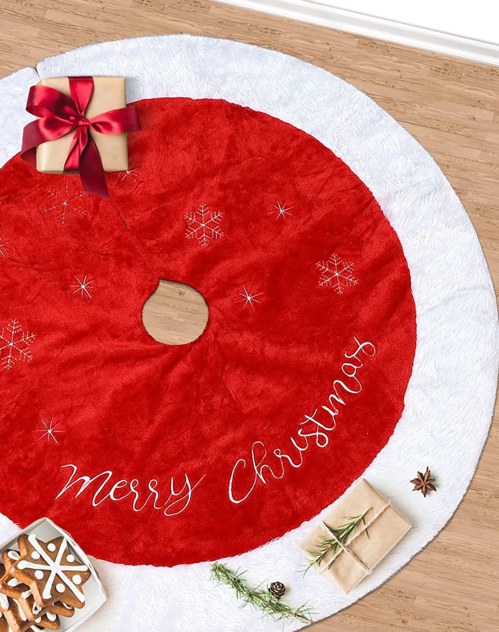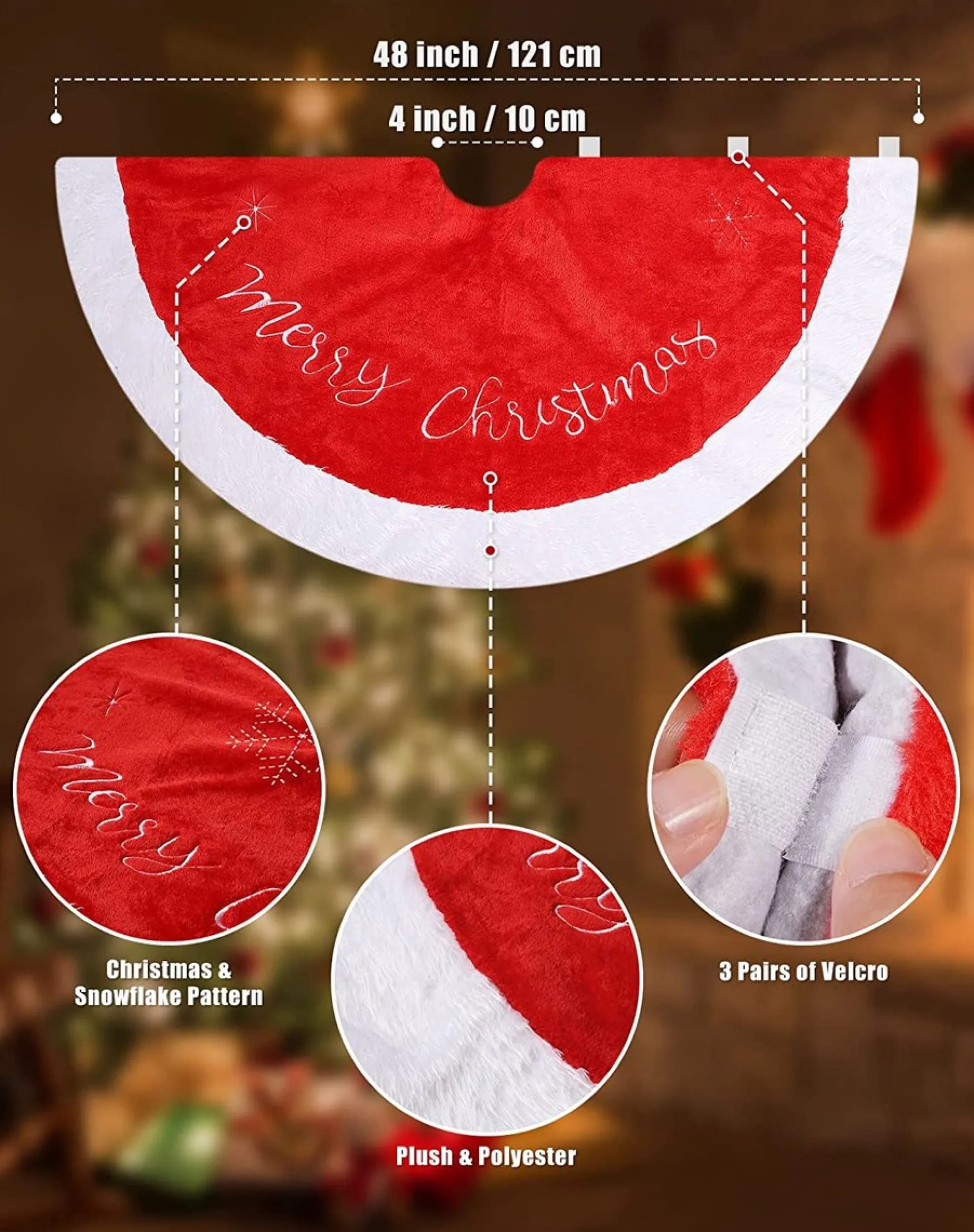 - Opvallend Patroon: Met Een Zorgvuldig Genaaid Borduurwerk Van Vrolijk Kerstfeest En Een Sneeuwvlokkenpatroon Op Wit Pluche En Rood Polyester, Dat Nooit Uit De Mode Raakt, Zal Deze Zachte En Opvouwbare Boomrok Voor Wooncultuur Ongetwijfeld Vreugde Wekken En Jarenlange Herinneringen Bewaren Voor Jou En Je Gezin.