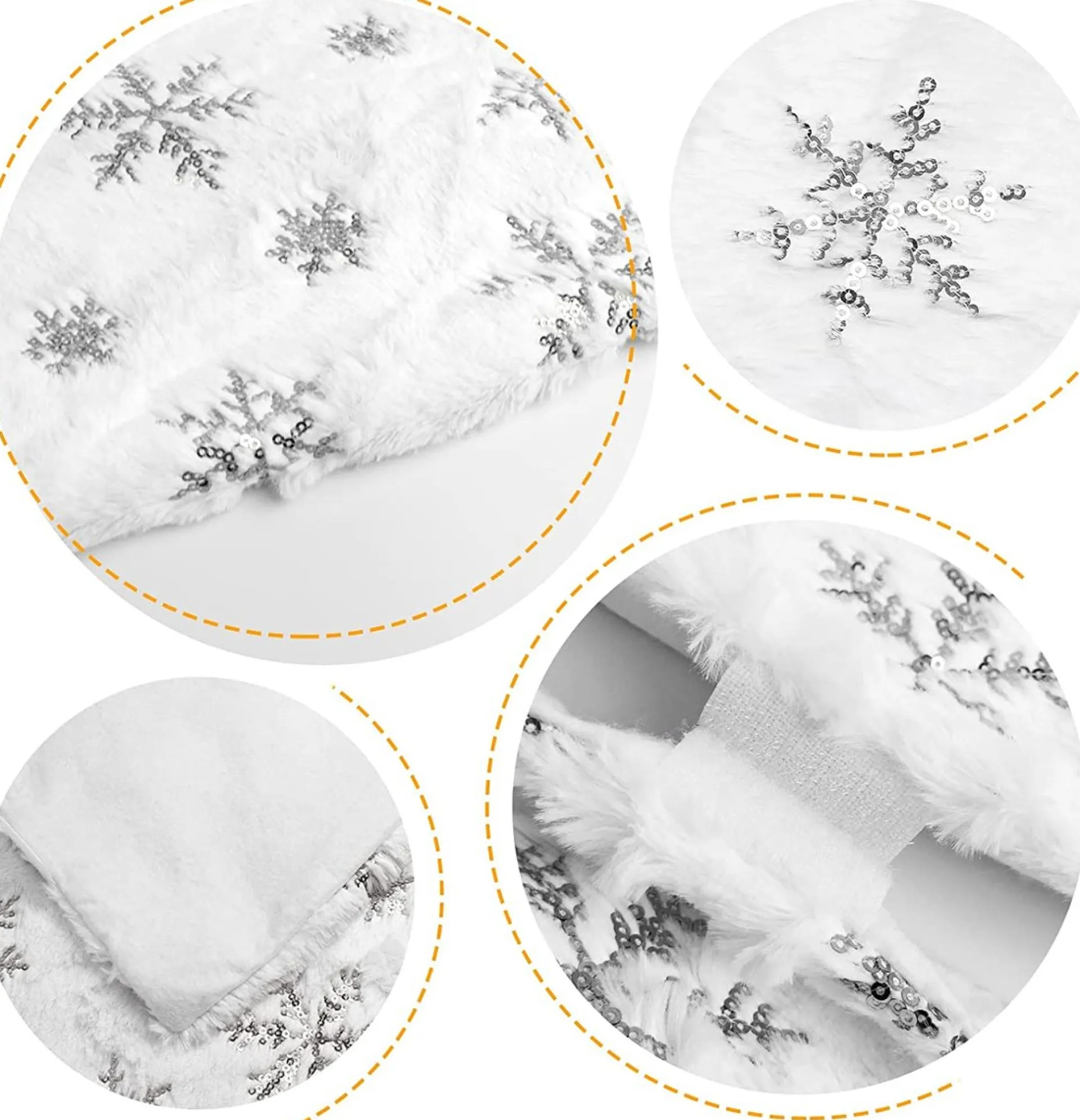 - Zacht En Elegant Design: Het Materiaal Van Het Kersttapijt: Kunstbont. De Boomdeken Bestaat Uit Zacht En Aangenaam Pluche. In De Winter Wordt Deze Dennenboomdeken Snel Een Favoriete Plek Van Je Huisdier En Is Ook Een Uitstekend Cadeau Voor Je Vrienden. Kerstboomrok Met Zilveren Sneeuwvlokkenpatroon, Rustiek En Traditioneel. Maak Je Huis Vol Kerstsfeer.