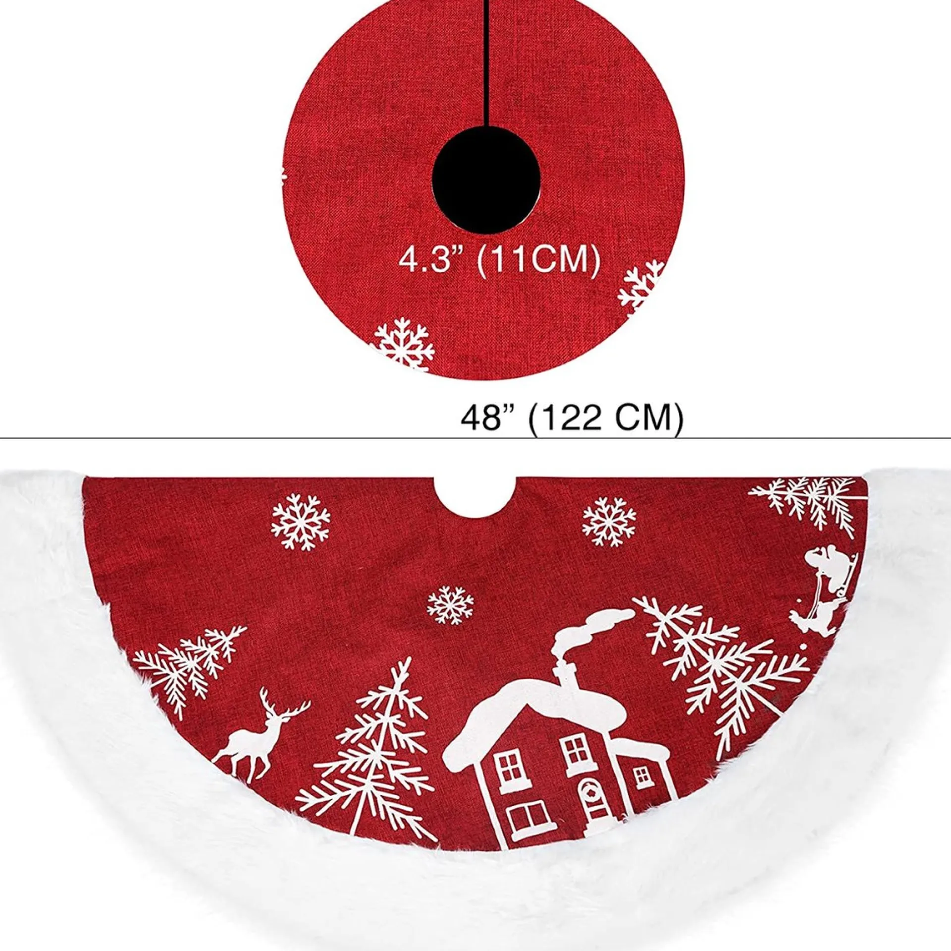 - 【Klassiek En Prachtig Design】: De Ronde Kerstboomdeken Bestaat Uit Uitstekend Zaklinnen, Dat Met Een Klassiek Patroon Van Sneeuwvlok, Huis, Boom, Hert, Kerstman En Dikke Pluche Kunstbont Is Ontworpen. De Klassieke Pluche Boomrok Is Geschikt Voor Elke Thematische Kerstdecoratie.