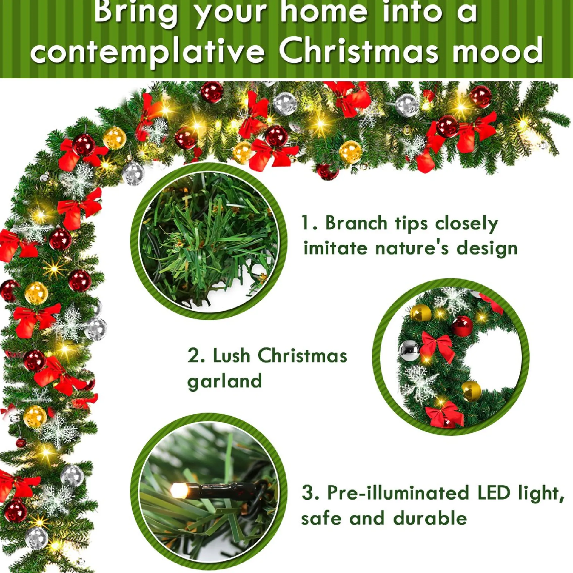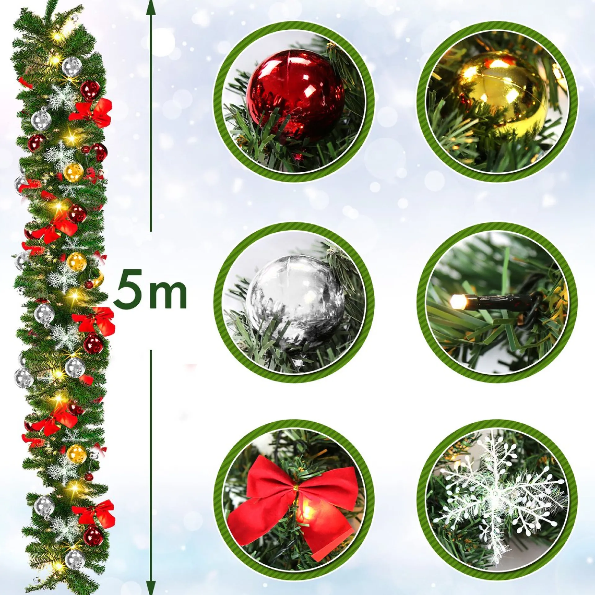 Kerstslinger: Decoratieve Krans 5M Incl. Kerstdecoratie Met 100 Led’s, De Warmwitte Verlichting Zorgt Voor Een Gezellige Sfeer. Dennenhouten Krans Van Moeilijk Ontvlambare Materialen, Dus Geschikt Voor Binnen En Buiten.