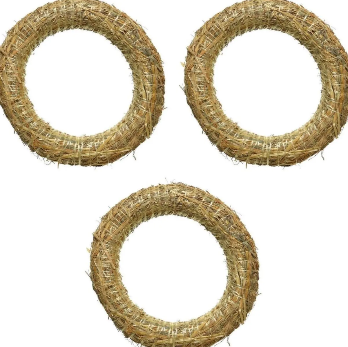 3X Stro Kerstkransen/Strokransen Om Te Decoreren 20 X 4 Cm. Krans Van Stro Om Bijvoorbeeld Een Kerstkrans Van Te Maken. Diameter: 20 Cm. De Krans Is 4 Cm Dik. Aantal: 3X.
