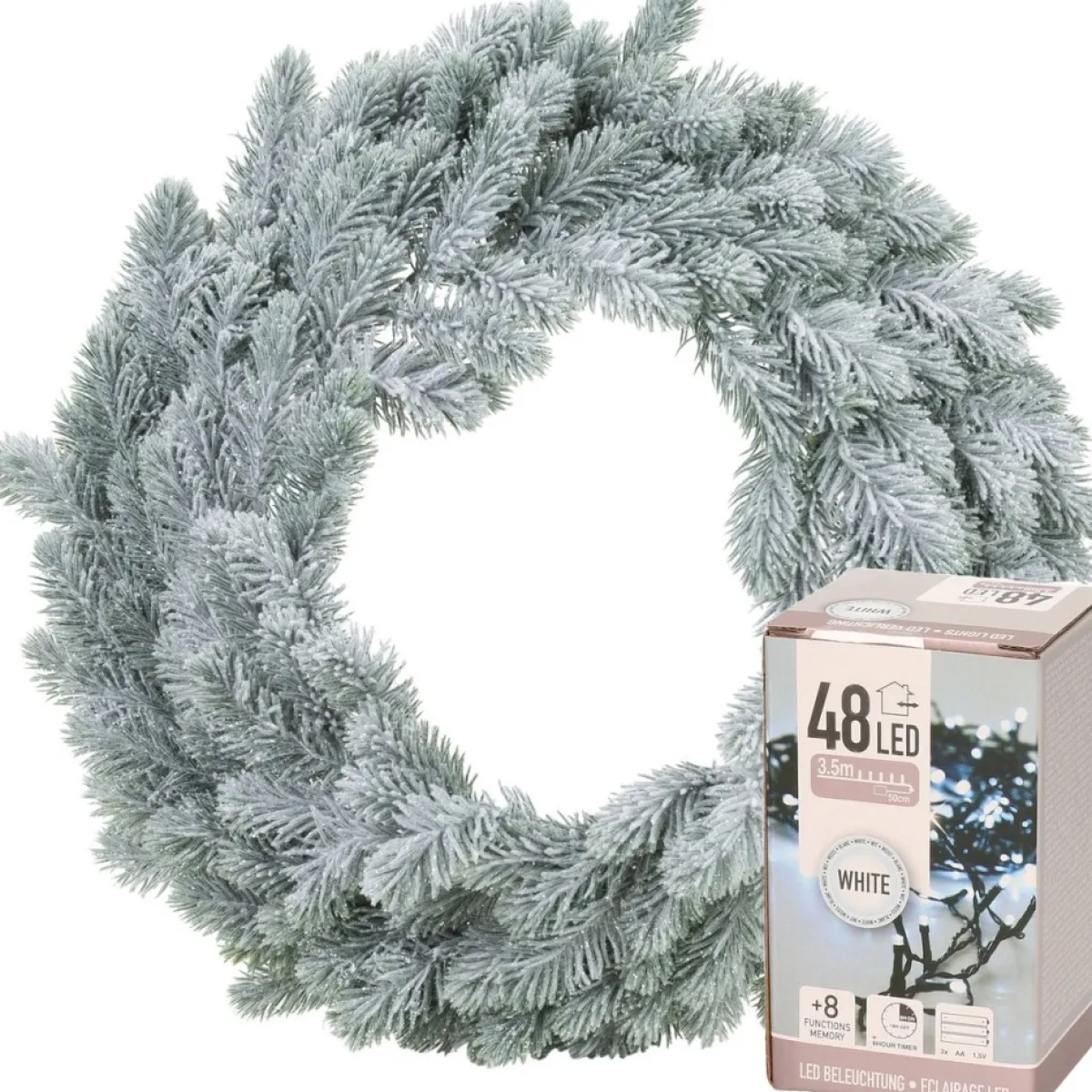 Kerstkrans/Dennenkrans Groen Met Sneeuw 36 Cm Incl. Verlichting Helder Wit. Kerstkrans/Dennenkrans Inclusief Verlichting Helder Wit. Aantal Lampjes: 48. Lengte Lichtsnoer: 4 Meter. Formaat Krans: D36Cm.
