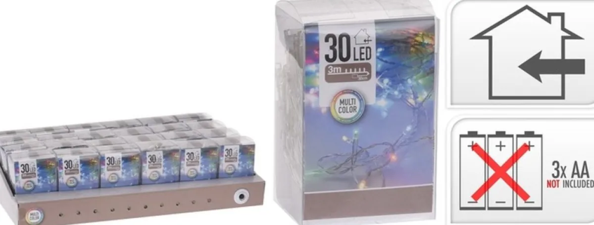 - 1X Kerstverlichting Op Batterij Gekleurd 30 Lampjes
