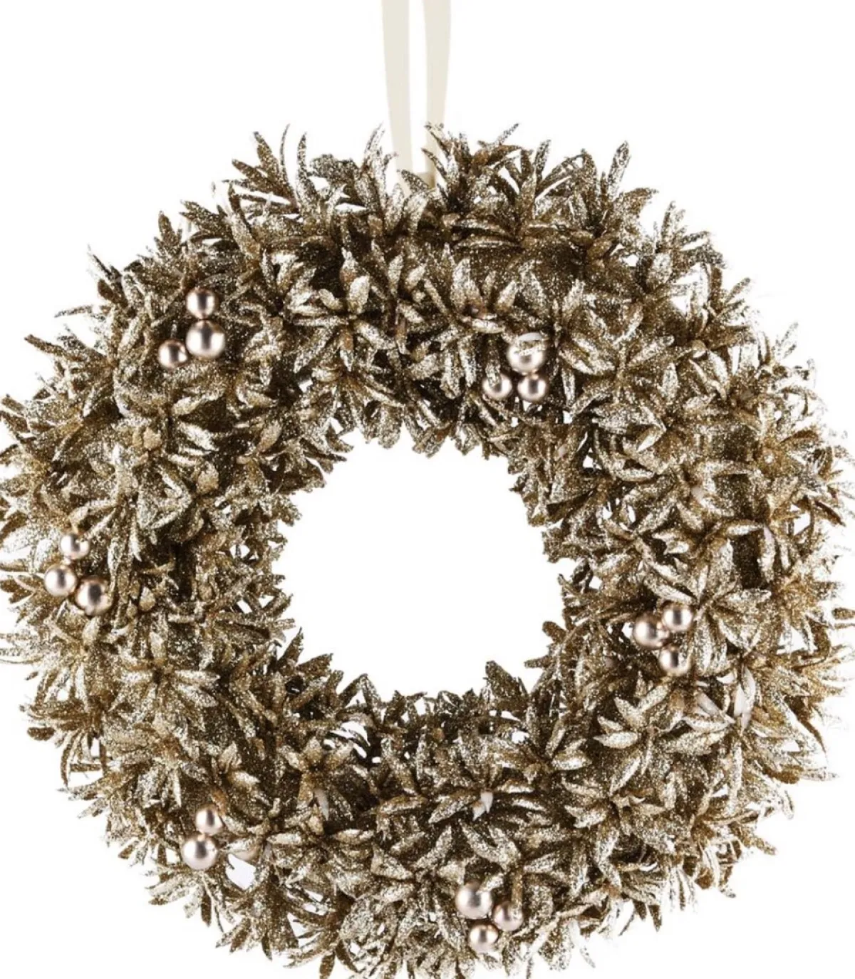 Merkloos Kerstkransen>Krans / Kerstkrans – Champagne / Beige / Zilver – O 32 X 7 Cm Hoog