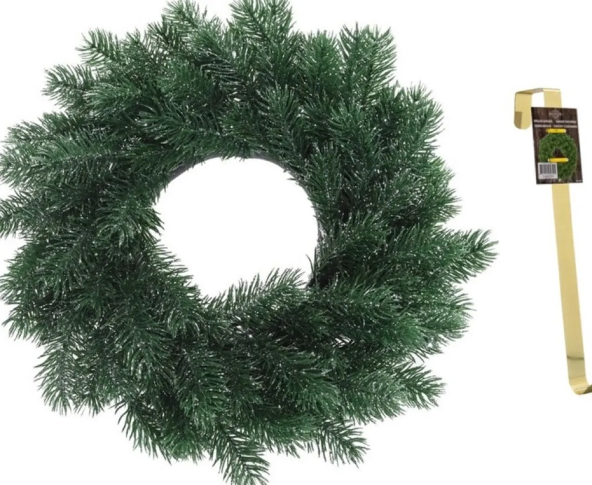 Kunst Kerstkrans Blauwgroen 35 Cm Met Gouden Hanger. Blauwgroene Kerstkrans Kerstdecoratie, Gemaakt Van Kunst Blauwspar Dennentakken. U Kunt De Krans Zelf Naar Wens Decoreren. De Krans Kunt U Ook Buiten Ophangen, Maar Kan Door Weersomstandigheden Iets Verkleuren. Materiaal: Kunststof. Formaat Hoogte/Dikte: 10 Cm, Diameter: 35 Cm. Inclusief Gouden Hanger 27 Cm Om Uw Kerstkrans Op Te Kunnen Hangen. Materiaal/Kleur: Messing.