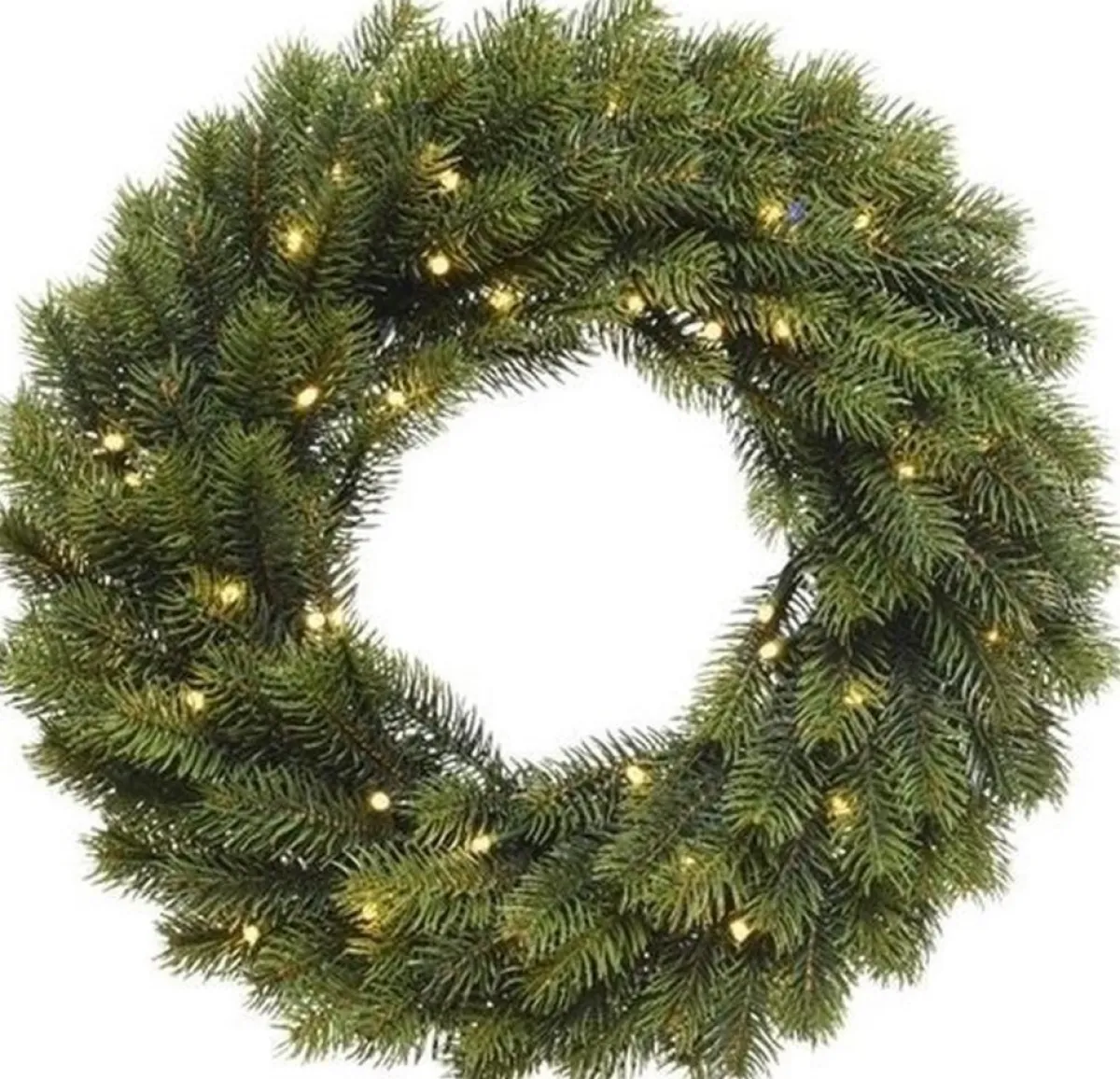 Set Van 2X Stuks Dennenkrans 40 Cm Met Verlichting. Groene Kerstkrans Met 49 Led Lichtjes. Deze Kerstkrans Heeft Een Diameter Van Ongeveer 40 Cm. Materiaal: Plastic. Kerstversieringen.