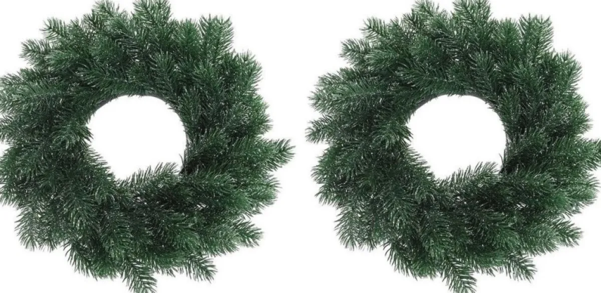 Set Van 2X Stuks Kunst Kerstkransen Blauwgroen 35 Cm. Blauwgroene Kerstkrans Kerstdecoratie, Gemaakt Van Kunst Blauwspar Dennentakken. U Kunt De Krans Zelf Naar Wens Decoreren. De Krans Kunt U Ook Buiten Ophangen, Maar Kan Door Weersomstandigheden Iets Verkleuren.