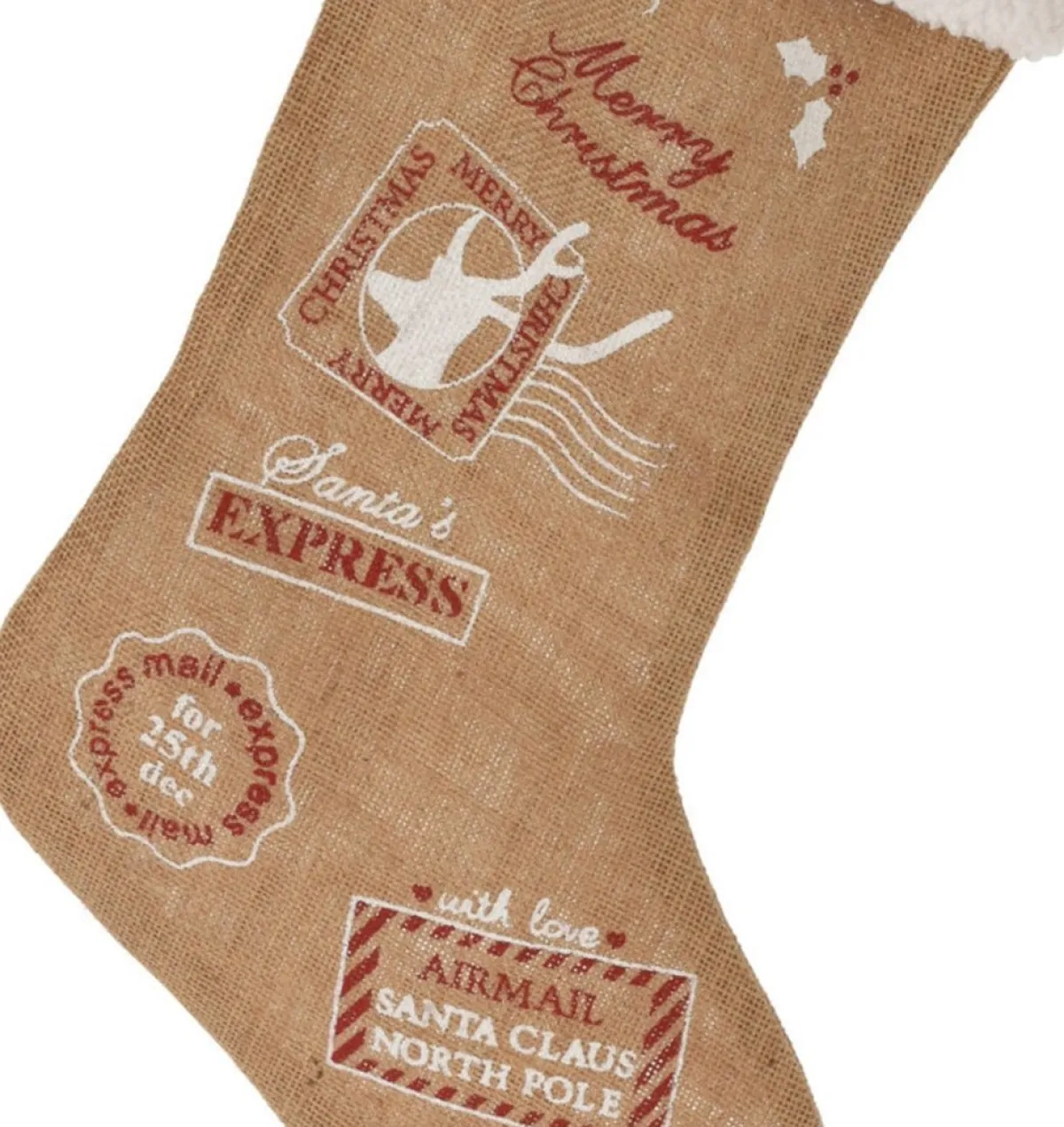 Leuke Decoratie Kerstsok Met Een Witte Rand En Kerst Print. De Kerstsok Is Gemaakt Van Jute/Polyster En Is 52 Cm Hoog. Formaat: Ongeveer 20 X 52 Cm. Deze Kerstsok Is Een Ideale Decoratie Voor Bij De Openhaard Of In De Kerstboom.