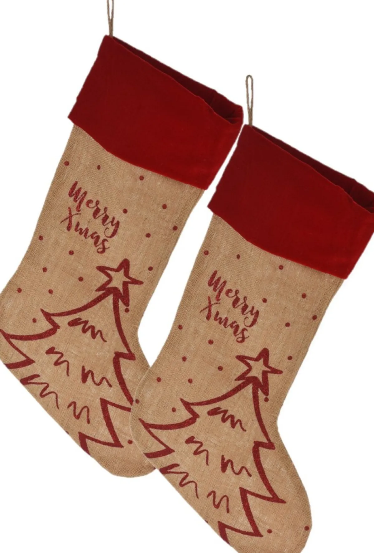 2X Stuks Leuke Decoratie Kerstsokken Met Een Rode Rand En Kerst Print. De Kerstsok Is Gemaakt Van Jute/Polyster En Is 52 Cm Hoog. Formaat: Ongeveer 20 X 52 Cm. Deze Kerstsok Is Een Ideale Decoratie Voor Bij De Openhaard Of In De Kerstboom.