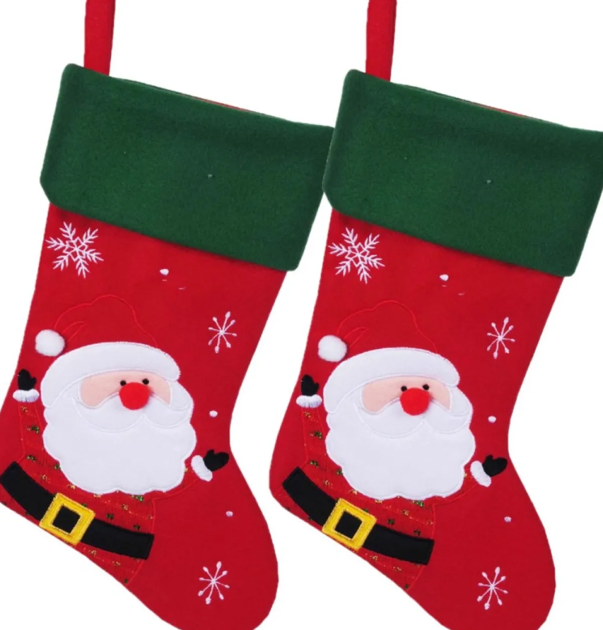 2X Stuks Decoratie Kerstsokken. Deze Leuke Kerstsok Met Kerstman Print Is Gemaakt Van Polyster En Is 45 Cm Hoog. De Kerstsok Is Een Ideale Decoratie Voor Bij De Openhaard Of In De Kerstboom. Kerstsokken Kerstversiering.