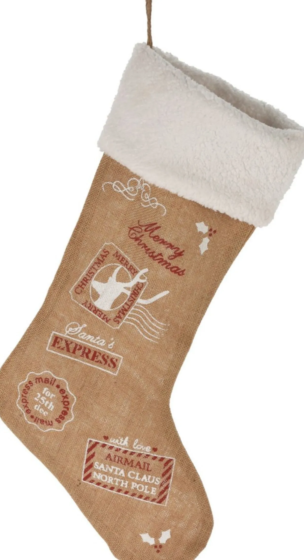 - 1X Decoratie Kerstsok – Witte Rand – H52 Cm – Jute/Polyester