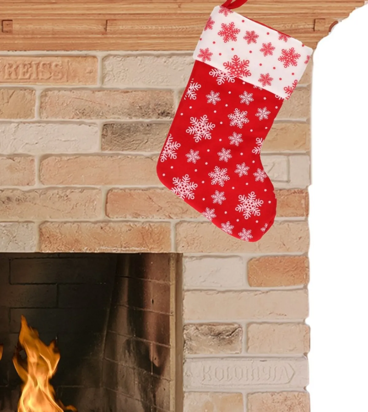 Decoratie Kerstsok Rood/Wit Met Sneeuwvlokken Print 40 Cm. Kerstversiering/Kerstdecoratie Sokken Om Bijvoorbeeld Aan De Openhaard Te Hangen. Formaat: Ongeveer 40 Cm. Materiaal: Polyester. Aantal: 1X.