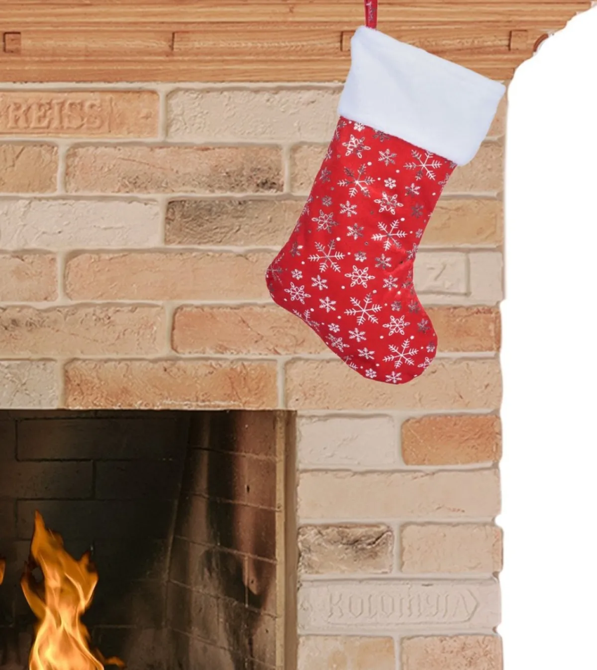 Decoratie Kerstsok Met Sneeuwvlokken Opdruk 42 Cm. Formaat: 42 Cm. Materiaal: Polyester.Kerstversiering/Kerstdecoratie …