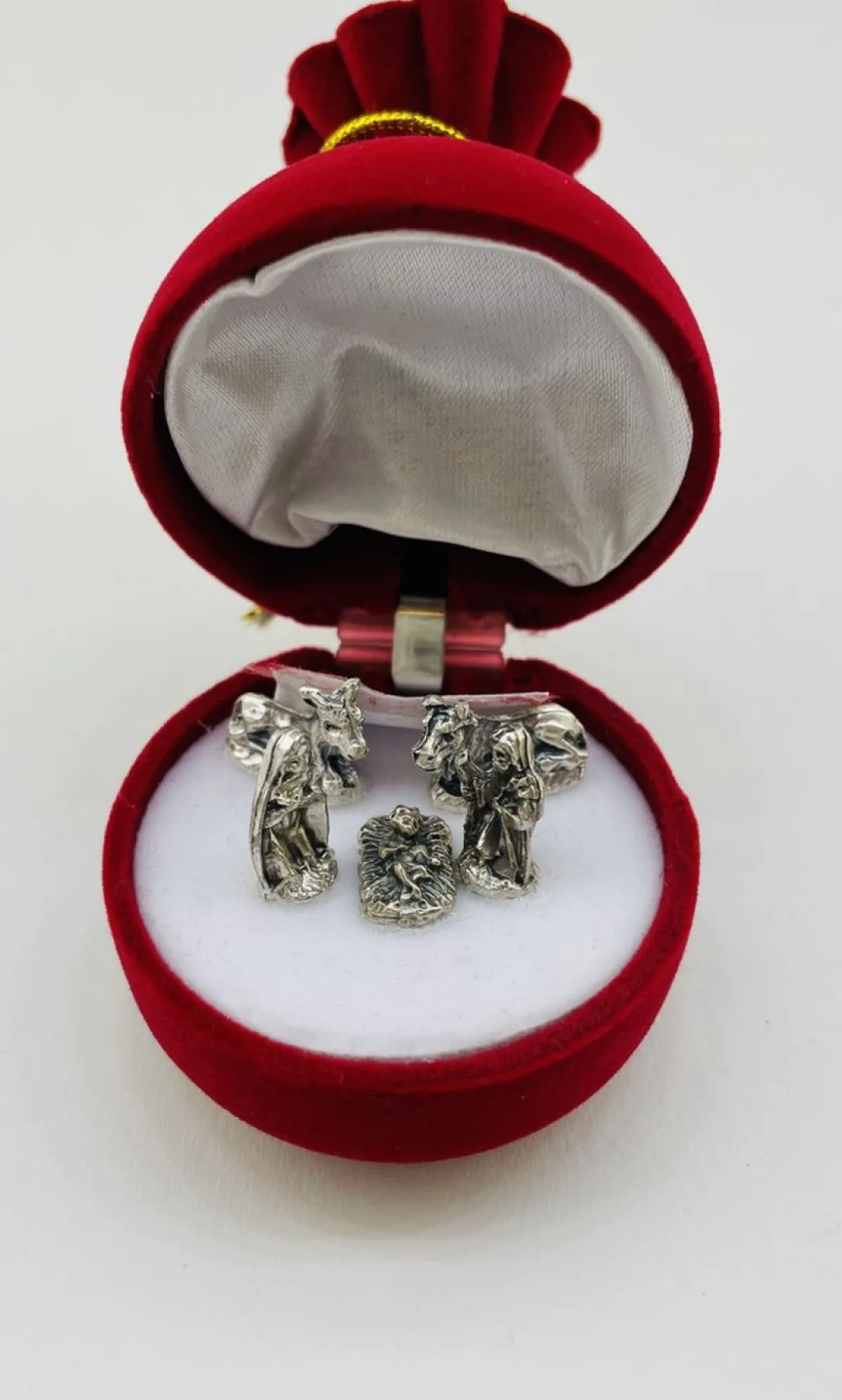 Merkloos Kerststallen>Mini Kribbe / Kerstgroep Rood In Sieradendoos. 5 X 5 X 7,5 Cm