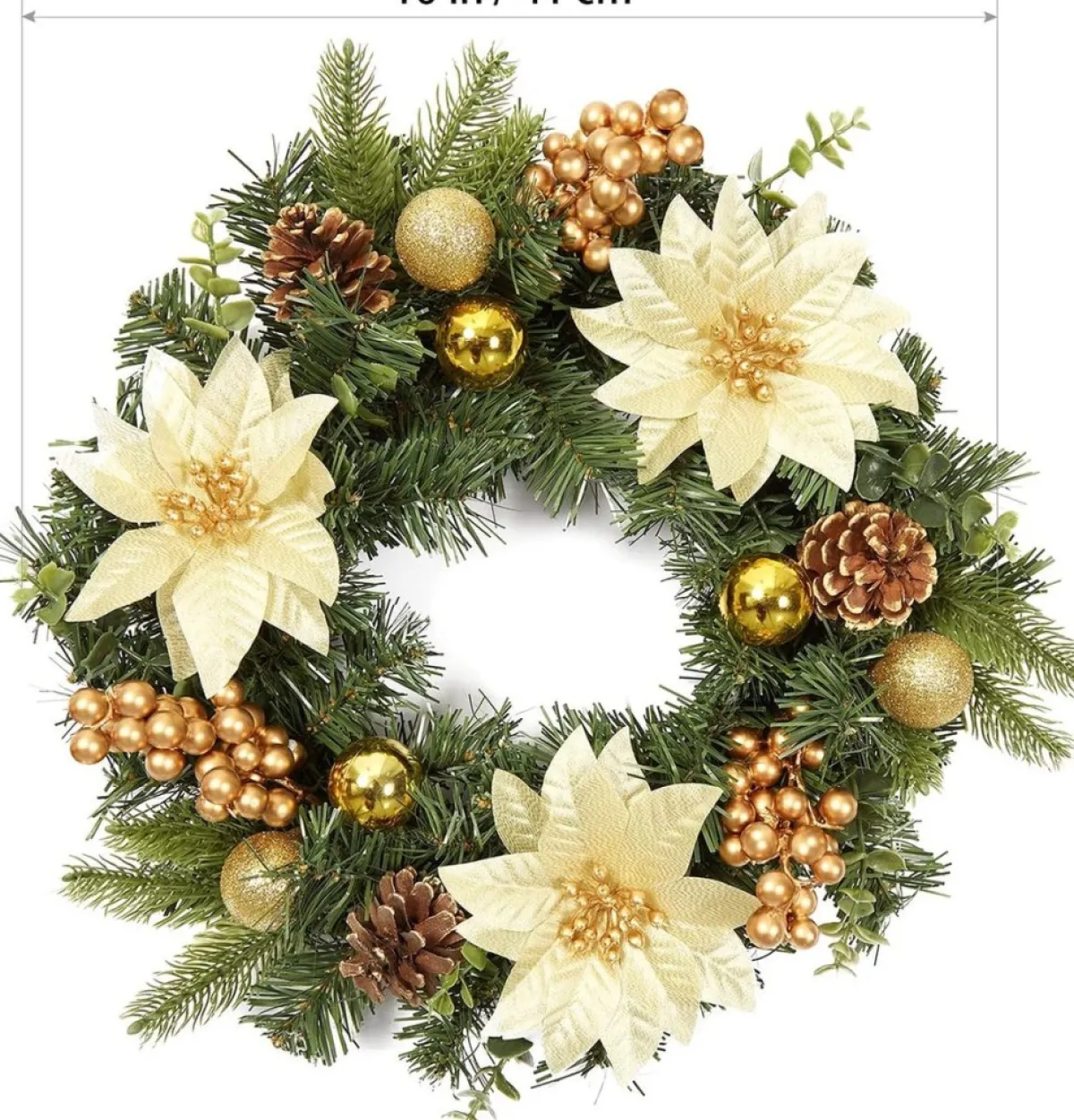 - De Kerstkrans Is 45 Cm Hoog Met Levensechte Planten En Diverse Decoraties. De Buitenkant Is Ongeveer 40 Cm. Deze Kerstkrans Is Gemaakt Van Hoogwaardige Materialen, Herbruikbaar En Duurzaam. Het Is De Beste Keuze Voor Uw Heerlijke Kerstvakantie.