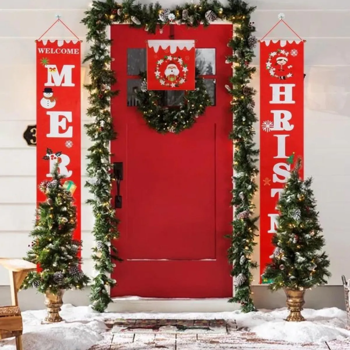 Merkloos Kerststukjes>Kerstbanner – Deur Kerst Decoratie – Inclusief Extra Midden Gedeelte En Bevestigingshaken
