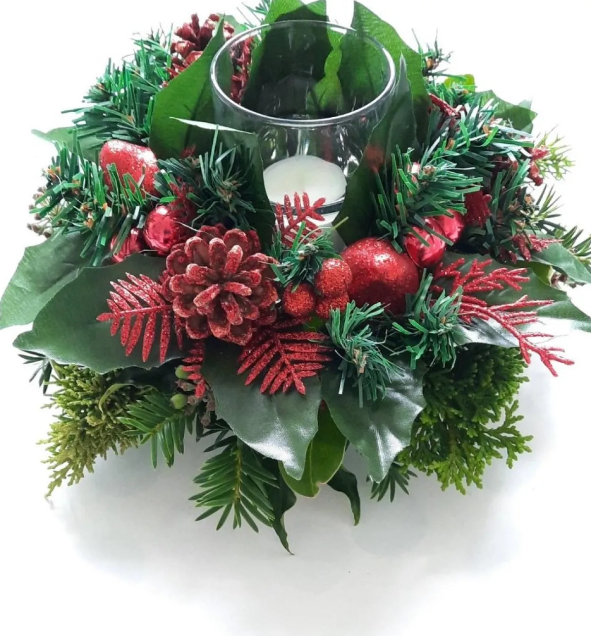 Zelf Toevoegen: Glaasje Met Waxinelichtje En Echt Kerstgroen