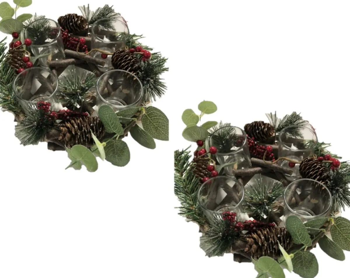 Kerststukje Met Theelichthouder En Decoratie 22 X 8 Cm Kerst Tafeldecoratie. Materiaal: Kunststof/Hout. Kant En Klare K…