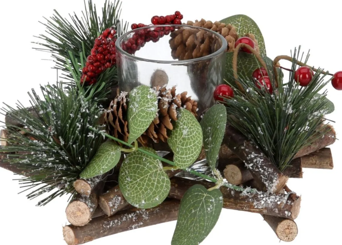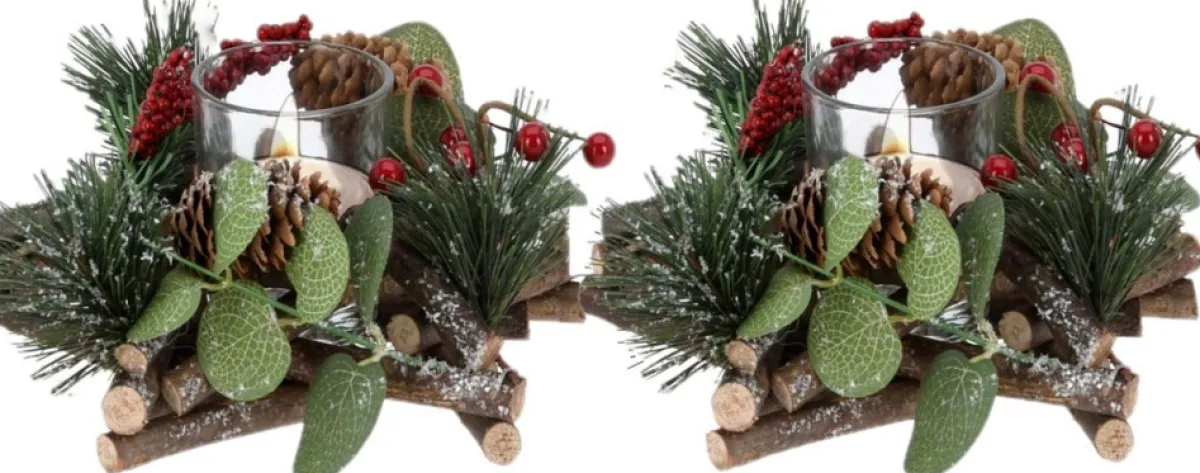 - 2X Kerststukje Stervorm Met Theelichthouder En Decoratie 17 X 8 Cm Kerst Tafeldecoratie