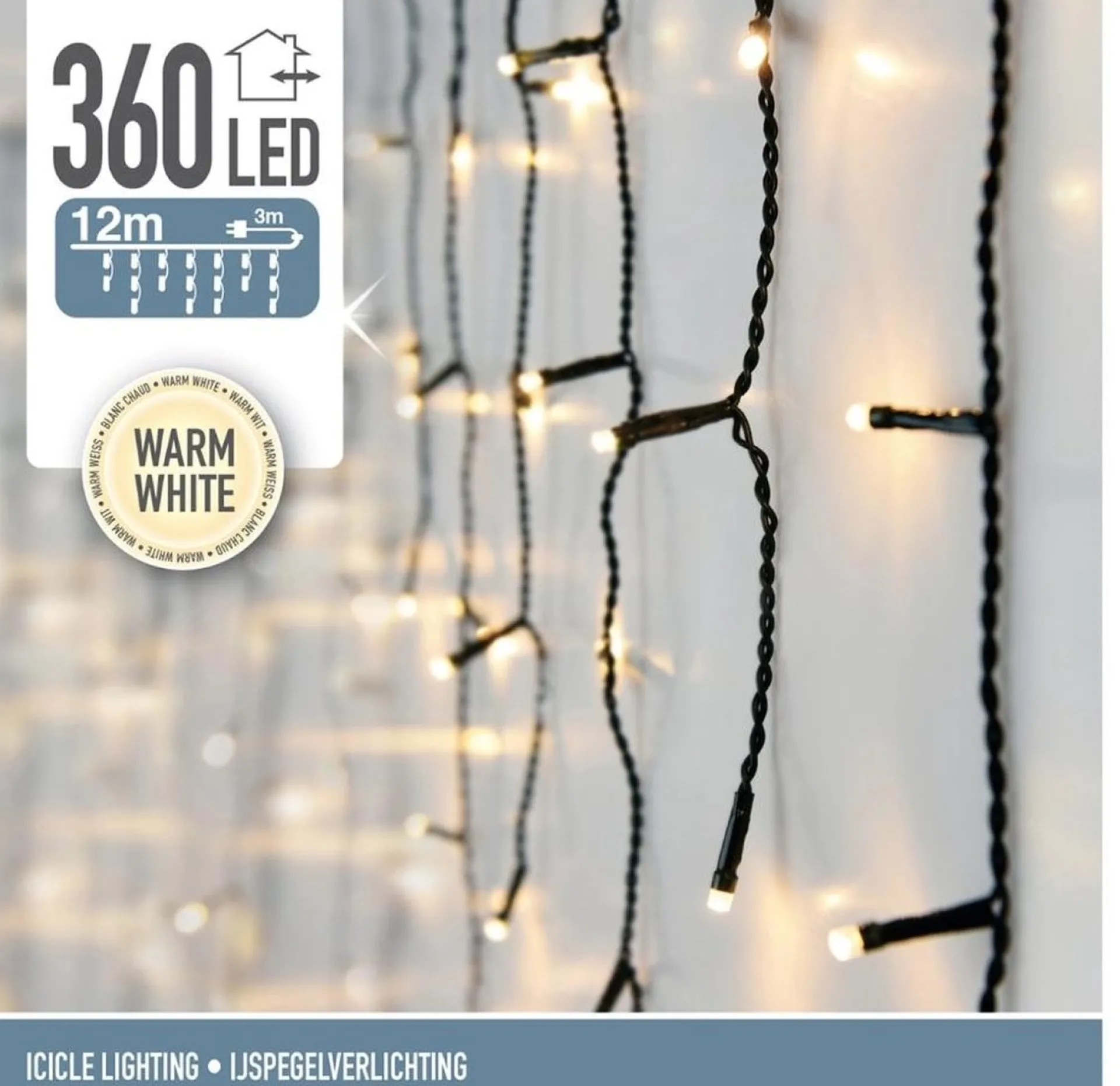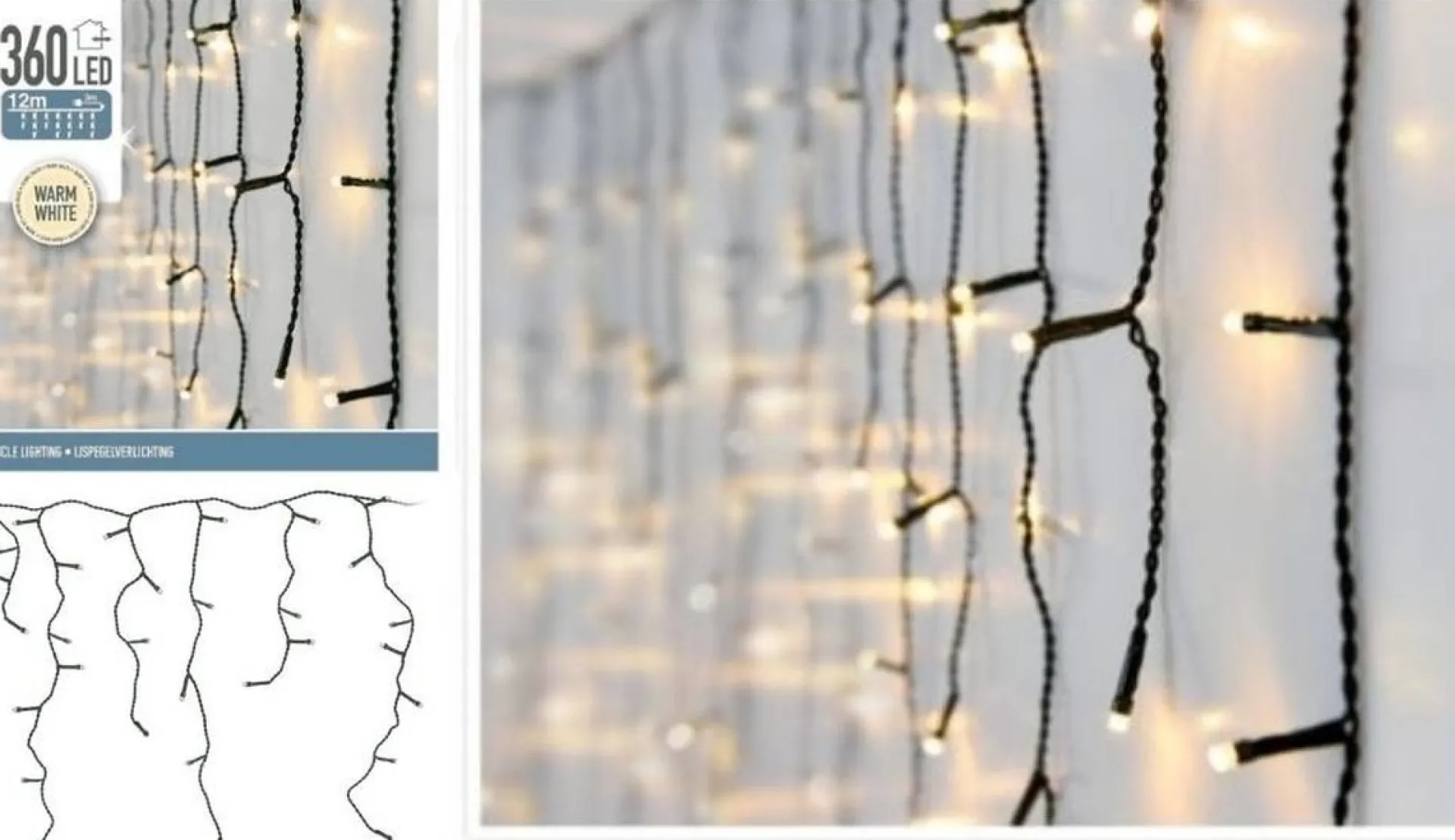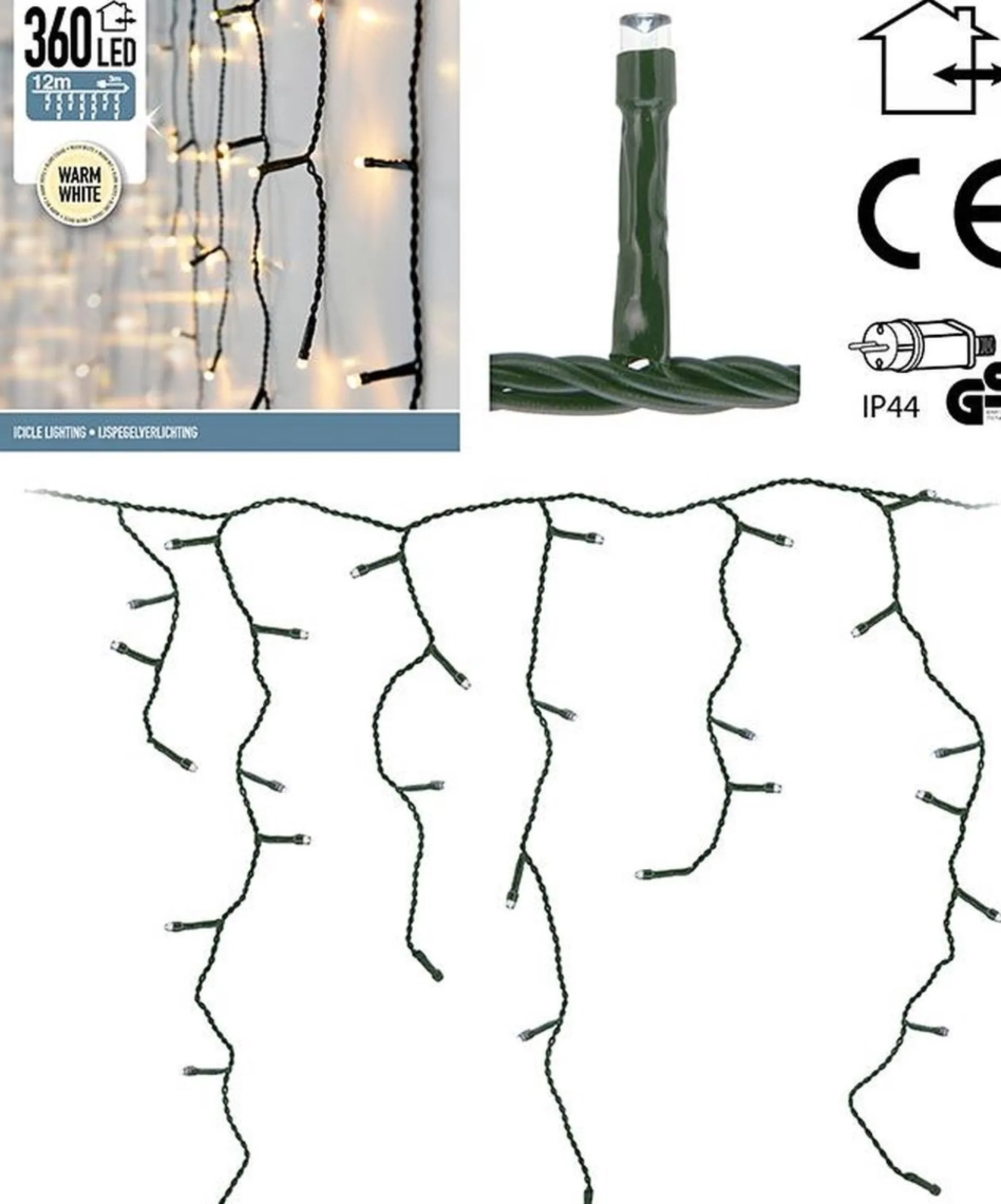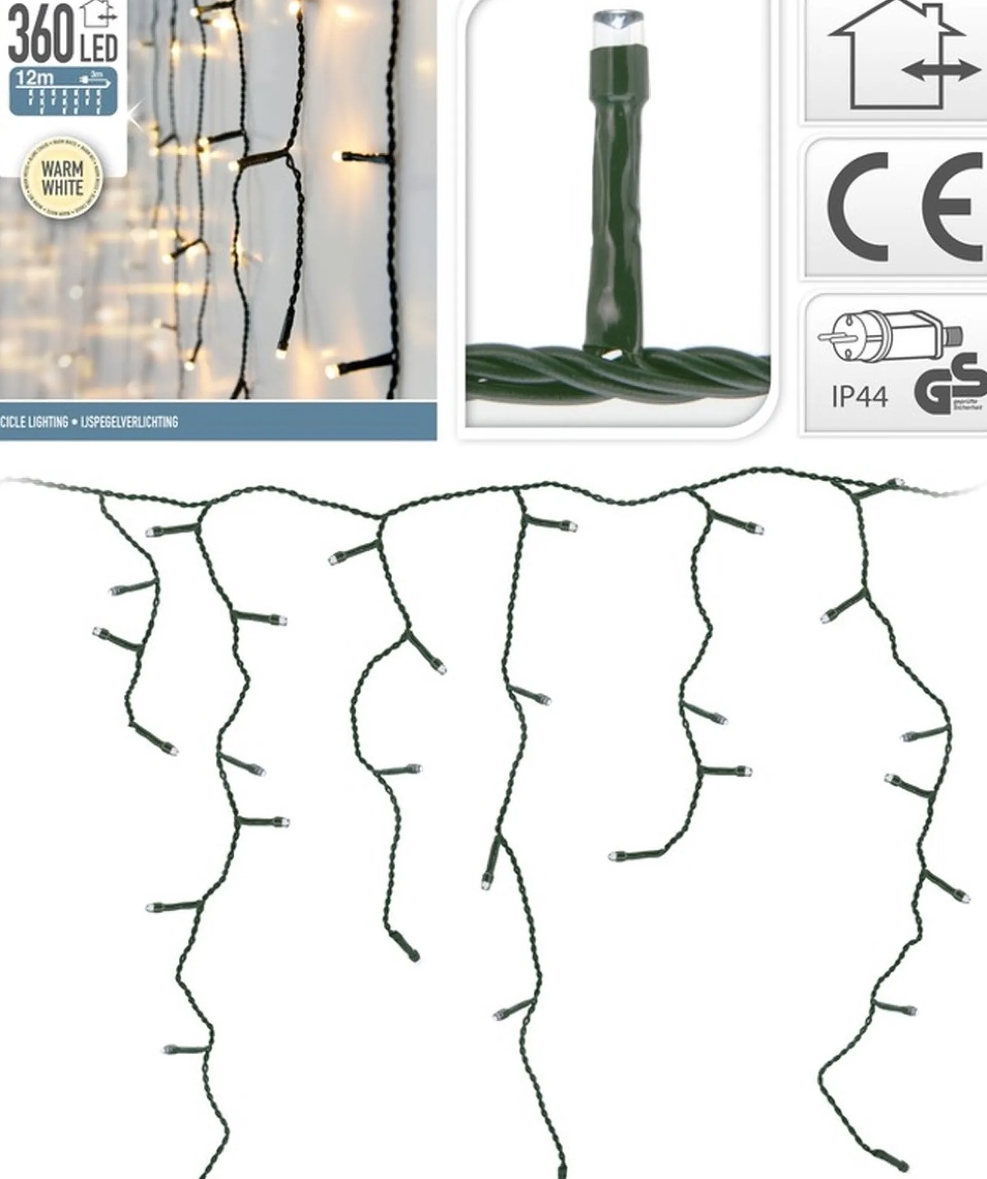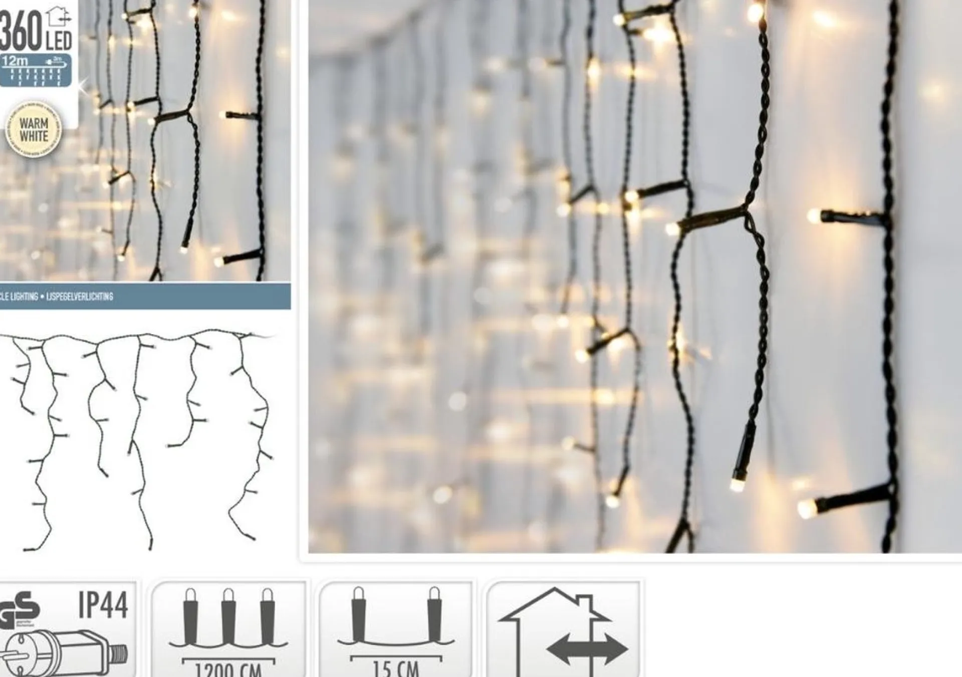 De Ijspegelverlichting Heeft 360 Lichtpunten En Is 12 Meter Lang. De Kleur Is Warm Wit. De Verlichting Werkt Op Adapter/Lichtnet En Is Zowel Voor Binnen Als Buiten Te Gebruiken.
