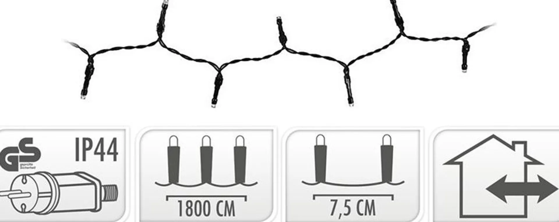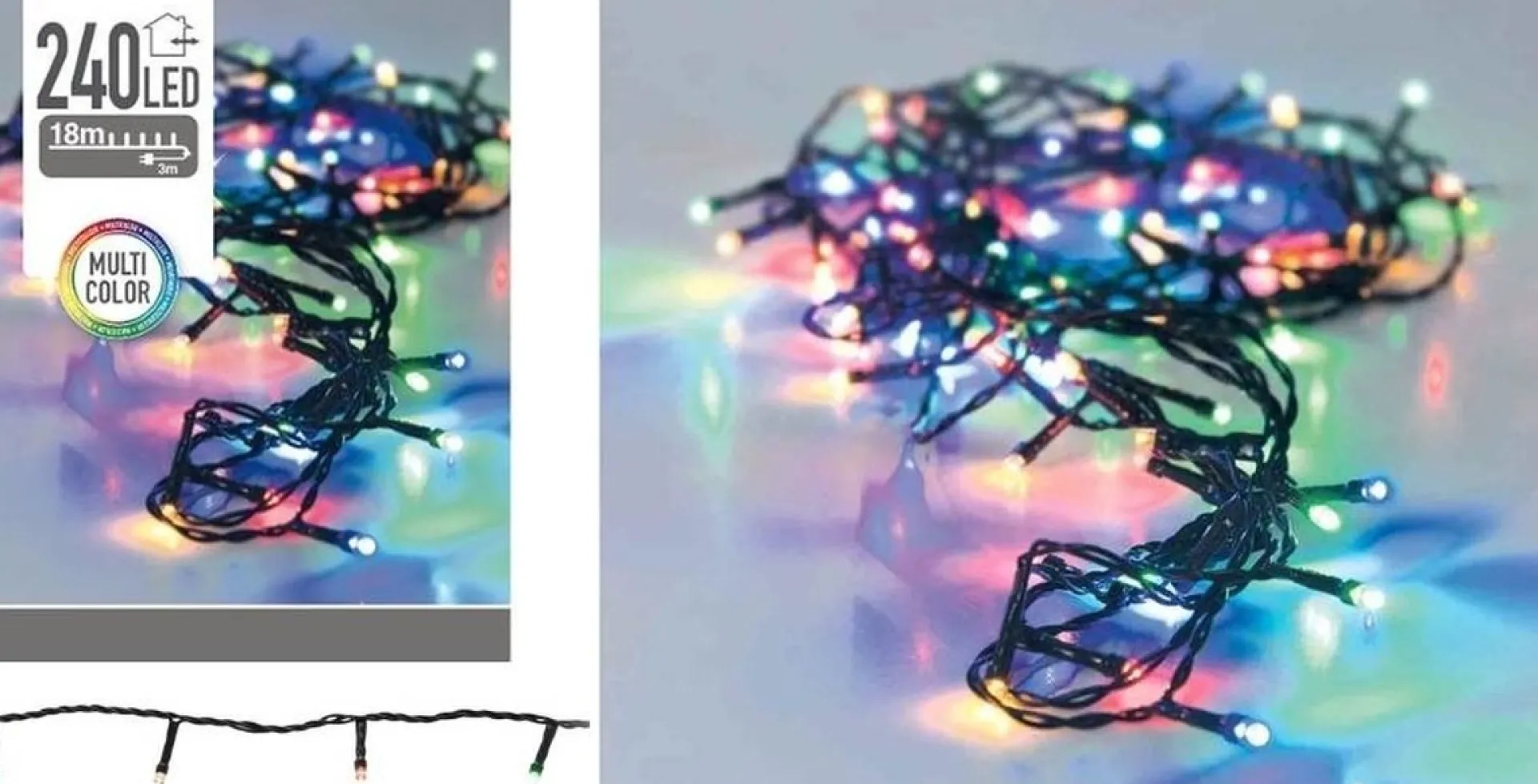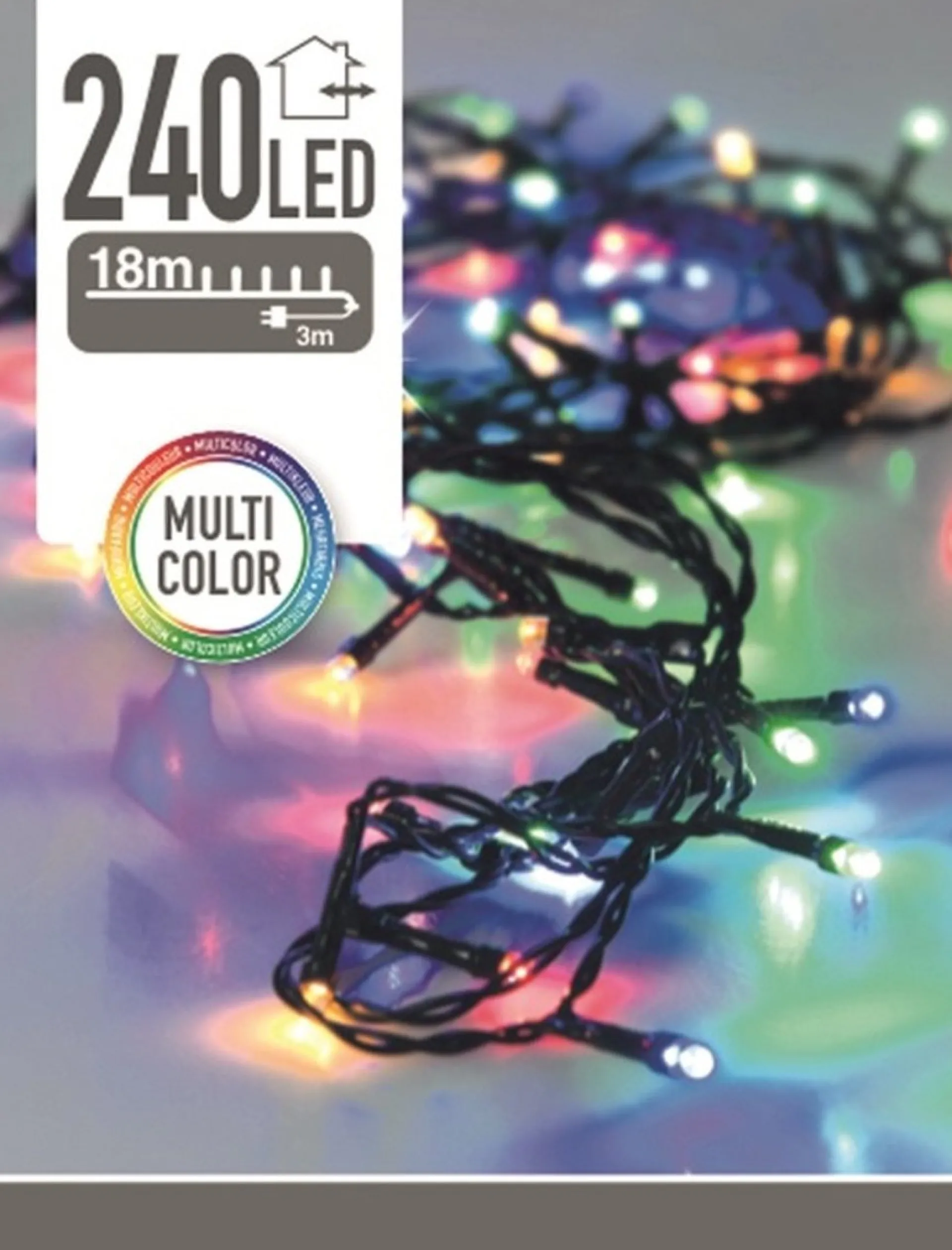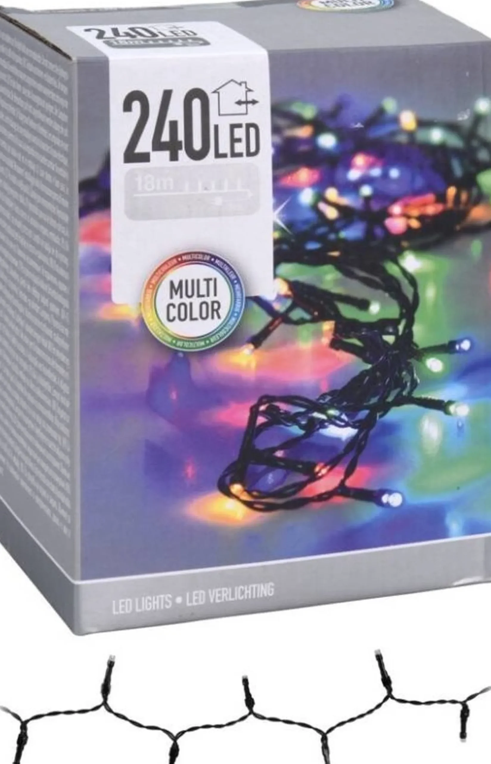 Kerstverlichting Lichtsnoeren 240 Gekleurde Led Lampjes Buiten. Gekleurde/Multicolor Kerstverlichting Aan Zwart Snoer. Aantal Lampjes: 240. Kleur Snoer: Zwart. Kleur Licht: Gekleurd. Geschikt Voor Binnen En Buiten. Lengte Lichtsnoer: 18 Meter (1800 Cm). Aanloopsnoer: 3 Meter (300 Cm). Voeding: Stroom, Ip44 Adapter. Afstand Tussen De Lampjes: 7,5 Cm.