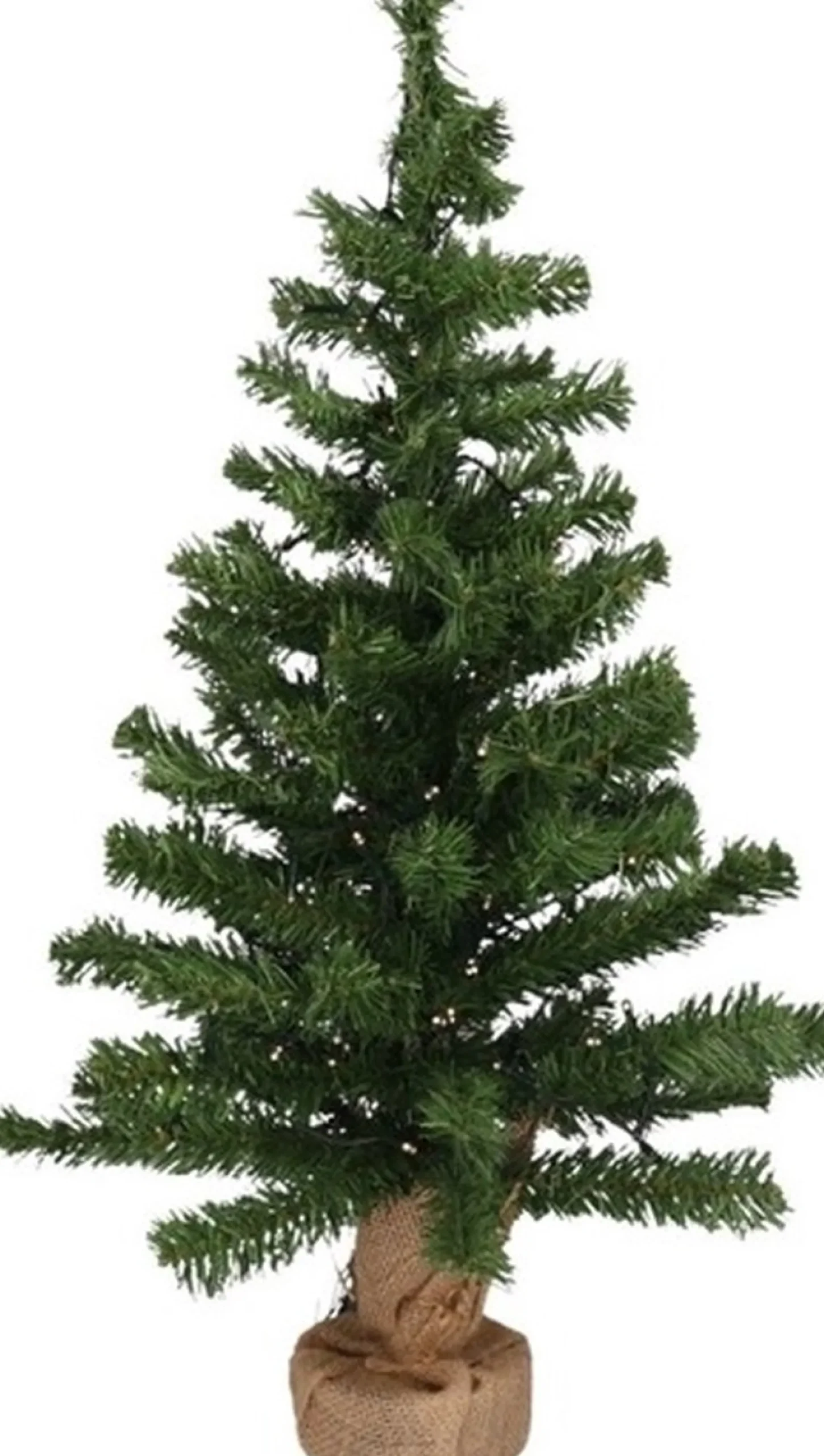 Kleine Kerstboom In Jute Zak Inclusief Verlichting 75 Cm. Deze Volle Mini Kerstboom Heeft 81 Takken En Is Gemaakt Van 100% Pvc. Het Boompje Wordt Inclusief Kerstverlichting Geleverd: Een Snoer Met 96 Warm Witte Led Lampjes. Deze Werkt Op Batterijen (Niet Inbegrepen).
