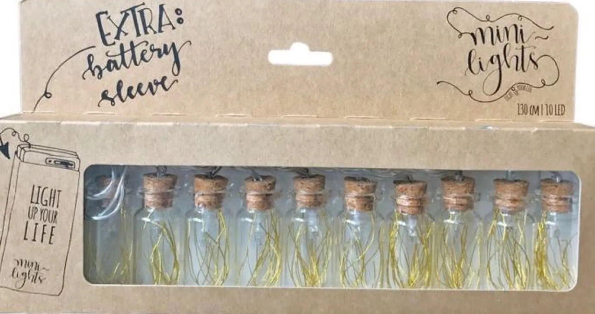 Leuk Lichtsnoer Met 10 Led-Lampjes Die Helder Warm Licht Geven. Het Flesje Is Ca. 5 Cm Hoog En Heeft Een Kurken Dopje. Het Werkt Op 2X Aa Batterijen Waarvoor Een Klein Kartonnen Zakje Is Aangeleverd Om Deze Te Verbergen. De Lengte Van Het Snoer Is 180 Cm. Decoreer Het Lichtsnoer In De Kerstboom Of In Een Vaas Met Wat Kerstgroen.