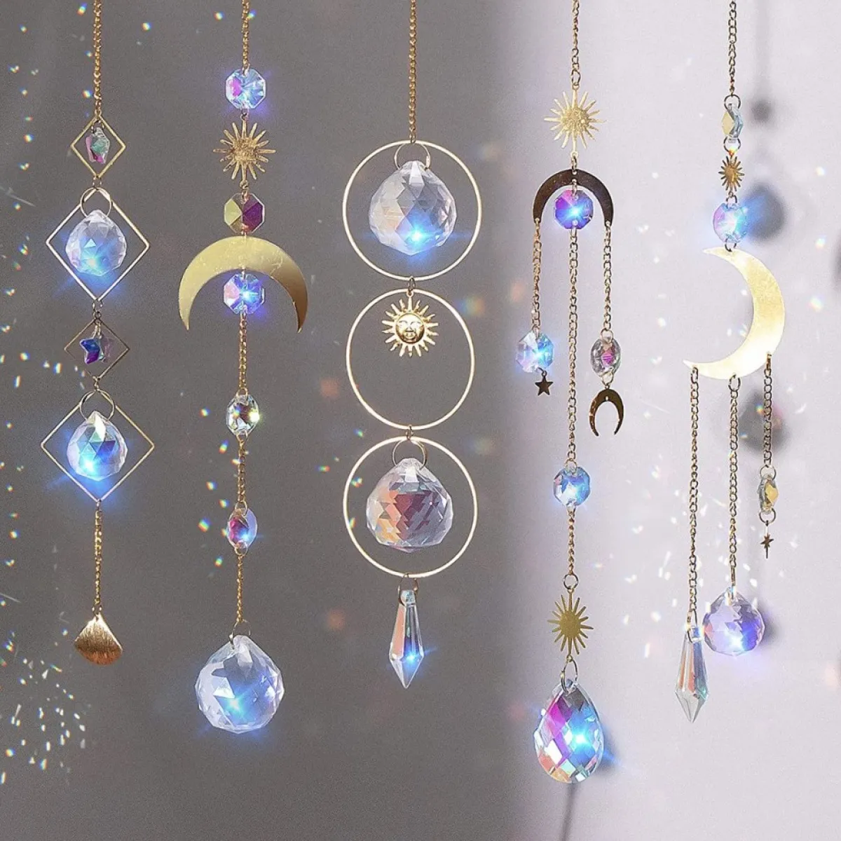 Nuyikaso Kersthanger>5 Stuks Zonnevangers Kristal Hangend Windspel Regenboog Zon Maan Hanger Kristallen Ornament Kristallen Ballen Voor Raam Huis Tuin Kerstmis Dag Feest Bruiloft Decoratie