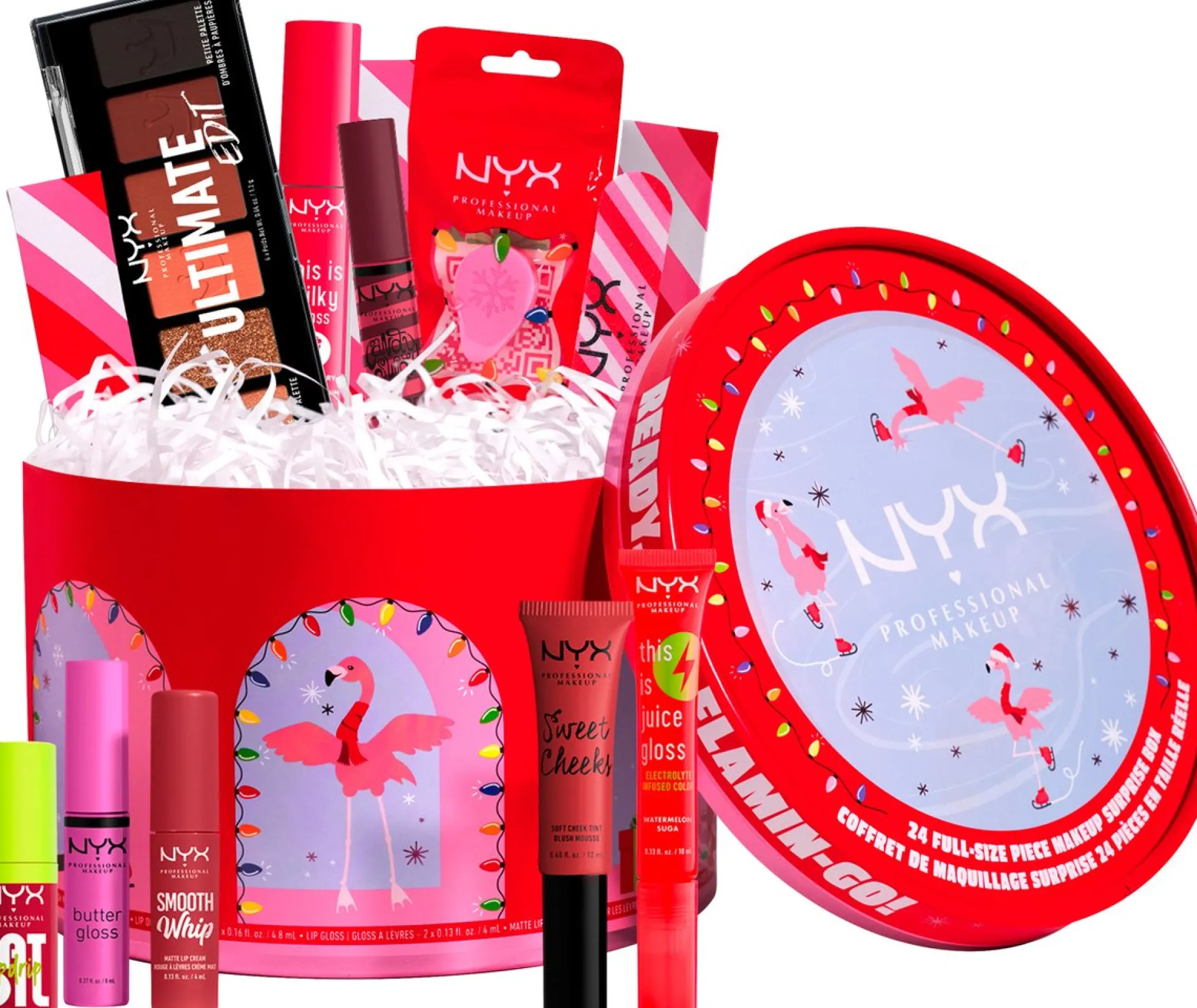 Achter Elk Deurtje Van De Nyx Professional Adventskalender Zit Een Bijzonder Make-Up Product Verstopt. Of Het Nu Lippen, Ogen Of Gezicht Is, De Veelzijdige Adventskalender Biedt Volop Variatie. Bij Het Selecteren Van De Kleuren Is Er Op Gelet Dat Ze Geschikt Zijn Voor Elk Type. De Tinten Zijn Er In Prachtige Rozige En Bruinachtige Nuances. Bovendien Is De Trommelvormige Verpakking Met Frosty Flamingomotief Een Absolute Blikvanger.