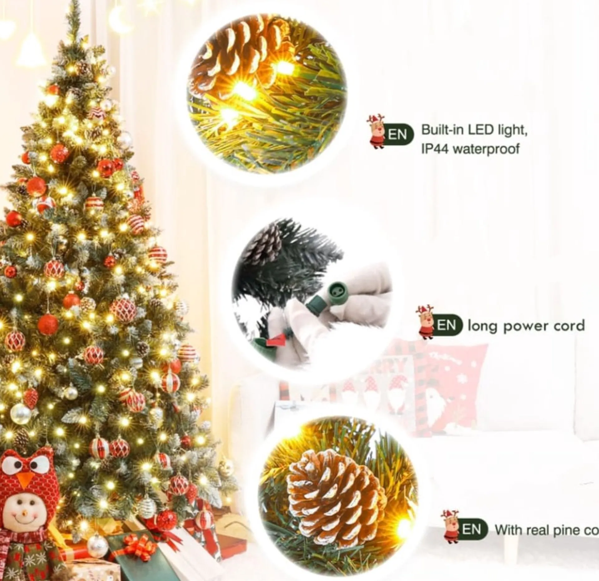 Geintegreerde Led-Verlichting – De Boom Heeft Een Lange Stroomkabel Voor Individuele Bediening. Na Het Monteren Van De Boom Sluit Je De Boom Direct Aan Op Het Licht En Is Hij Klaar Voor Gebruik. Hier Zijn Geen Extra Treden Of Verlichtingsmaterialen Nodig