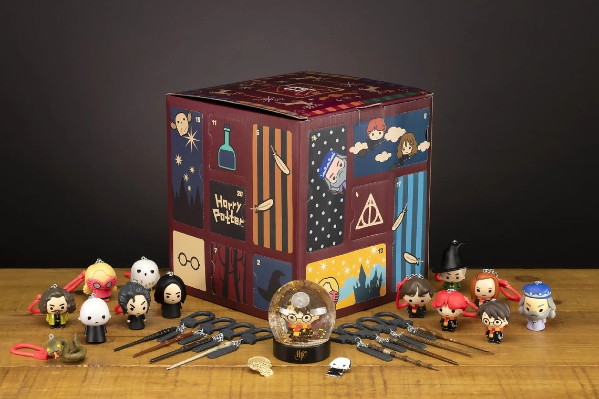 - Inclusief 24 Magische Harry Potter Verrassingen Waaronder Exclusieve Producten: 3D Sleutelhanger Figuurtjes, Speldjes, Mini Toverstokken, Rugzakgenootjes En Een Harry Potter Sneeuwbol.