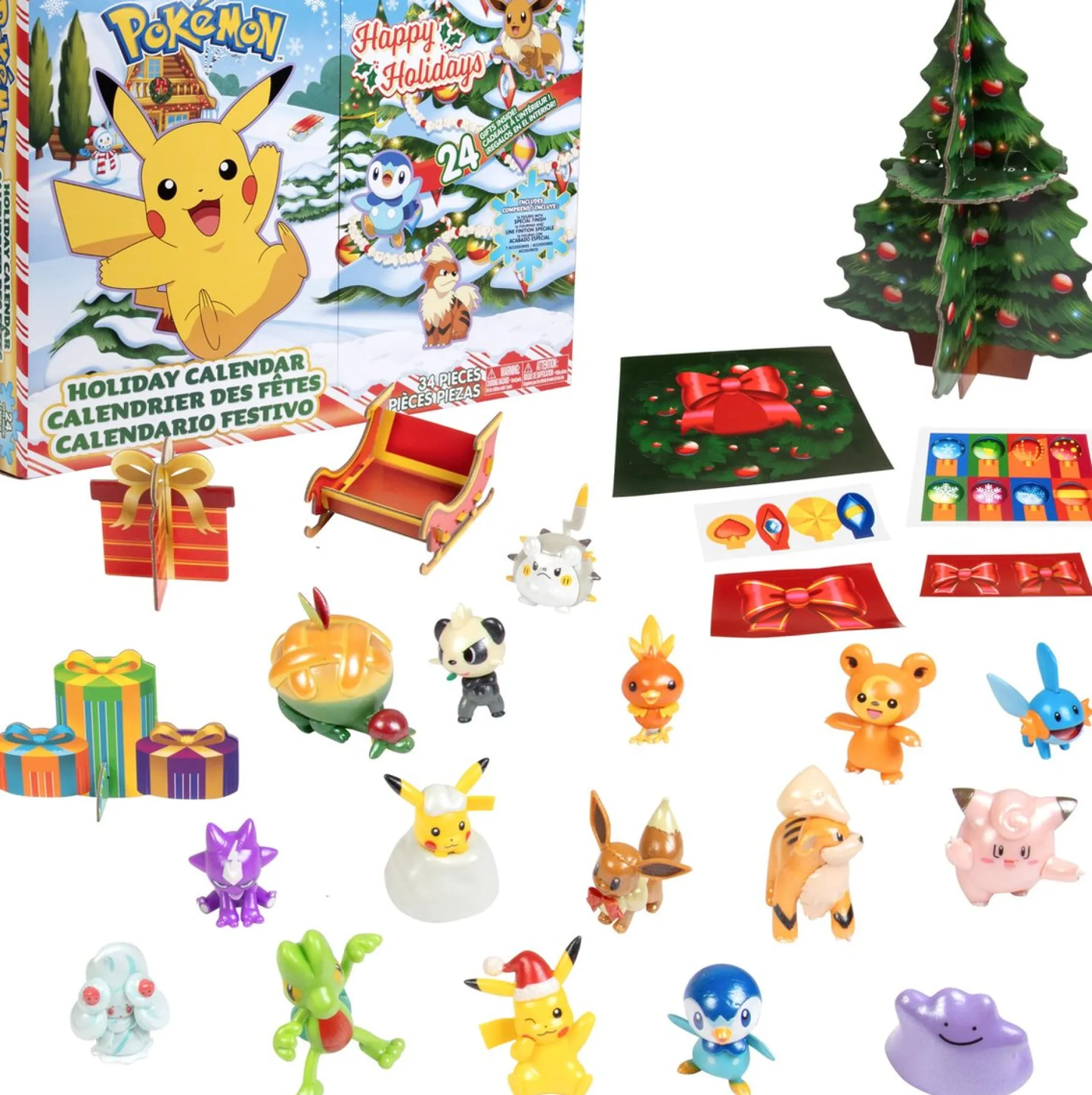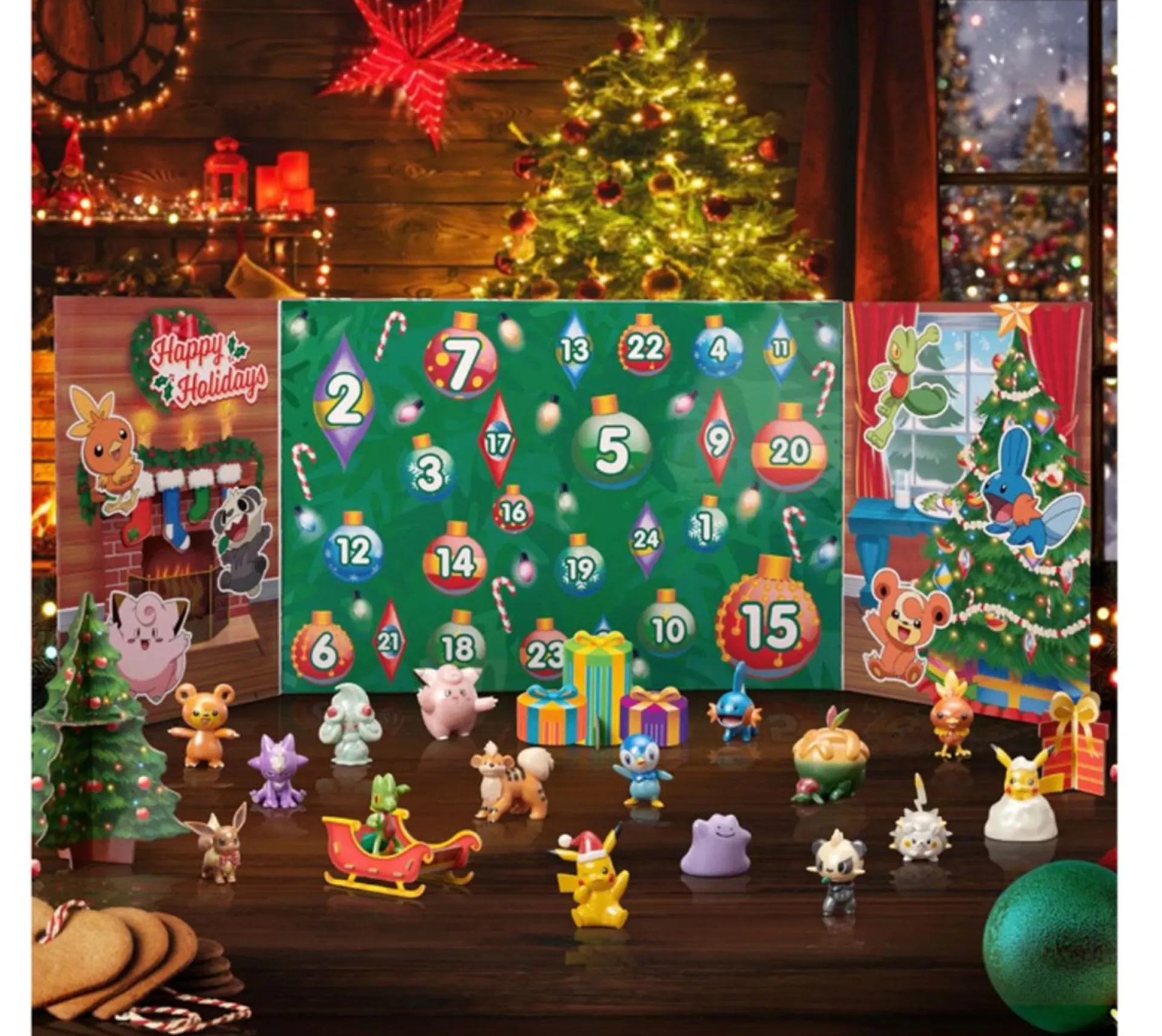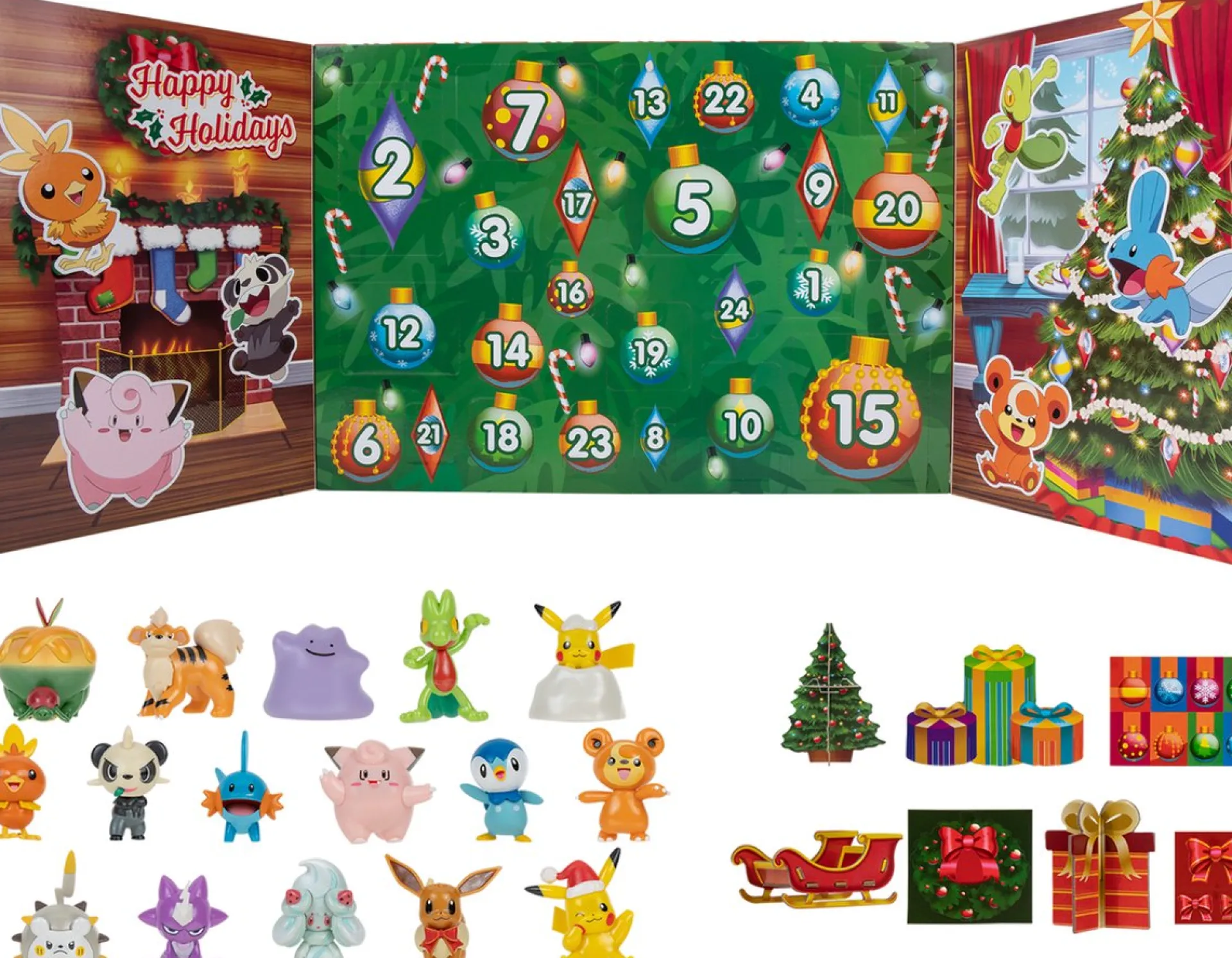 Vier De Feestdagen Met De Pokemon Adventskalender. Het Pakket Bevat Een Combinatie Van Unieke Figuurtjes En Accessoires Met Vakantie-Thema.