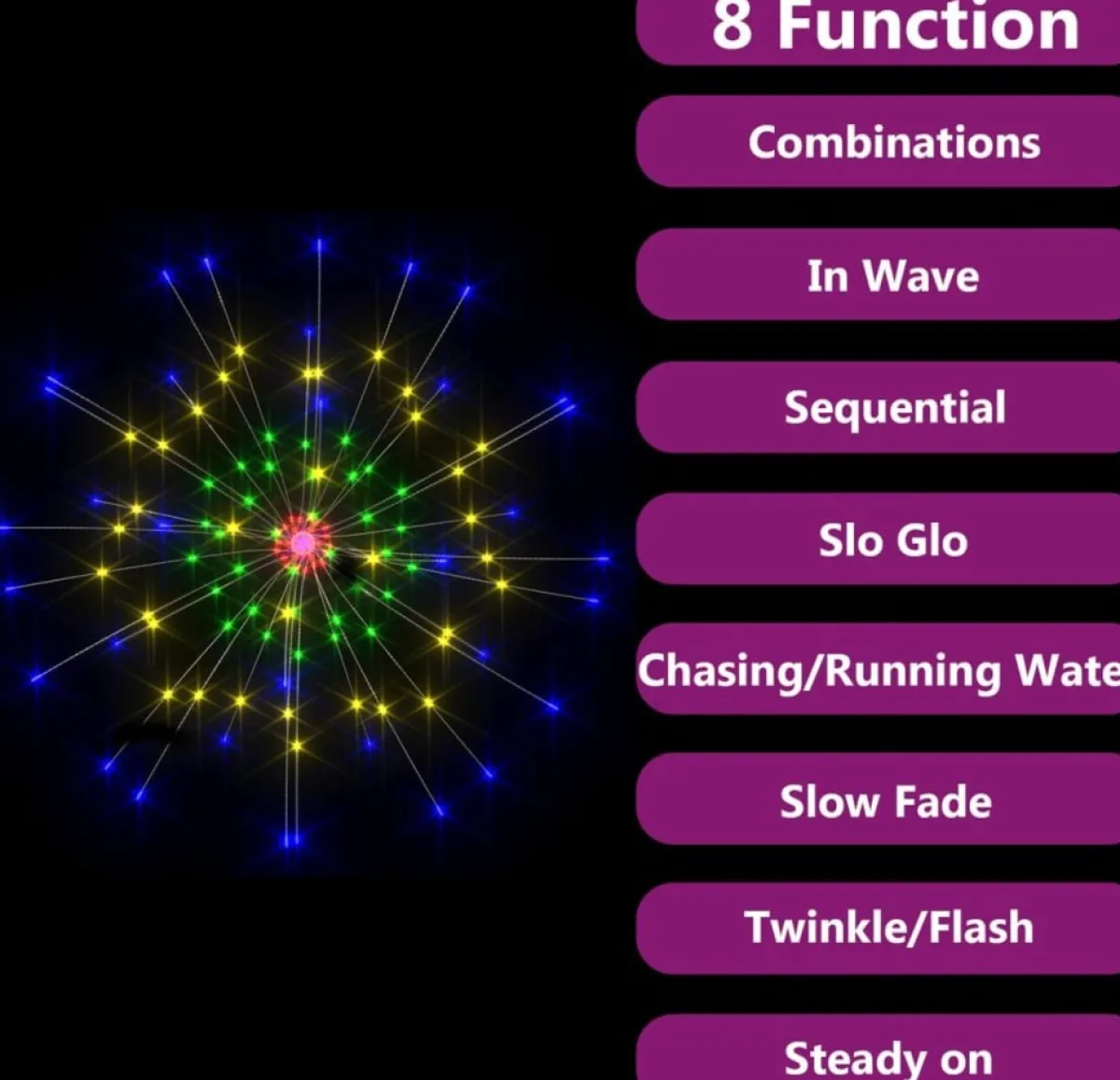 Het Meteoorlicht, Uitgerust Met Energiebesparende Led’s, Zorgt Voor Heldere En Krachtige Verlichting Voor Binnen En Buiten. Het Licht Heeft 8 Verschillende Lichteffecten: Combinatie, Golven, Sequentieel, Langzaam Gloeiend, Knipperend, Langzaam Vervagend, Fonkelend En Continue Verlichting. De Starburst Lamp Is Eenvoudig Te Bedienen Met De Meegeleverde Afstandsbediening. Dankzij De Flexibele Koperdraden Buig Je Ze Gemakkelijk In Elke Gewenste Vorm.