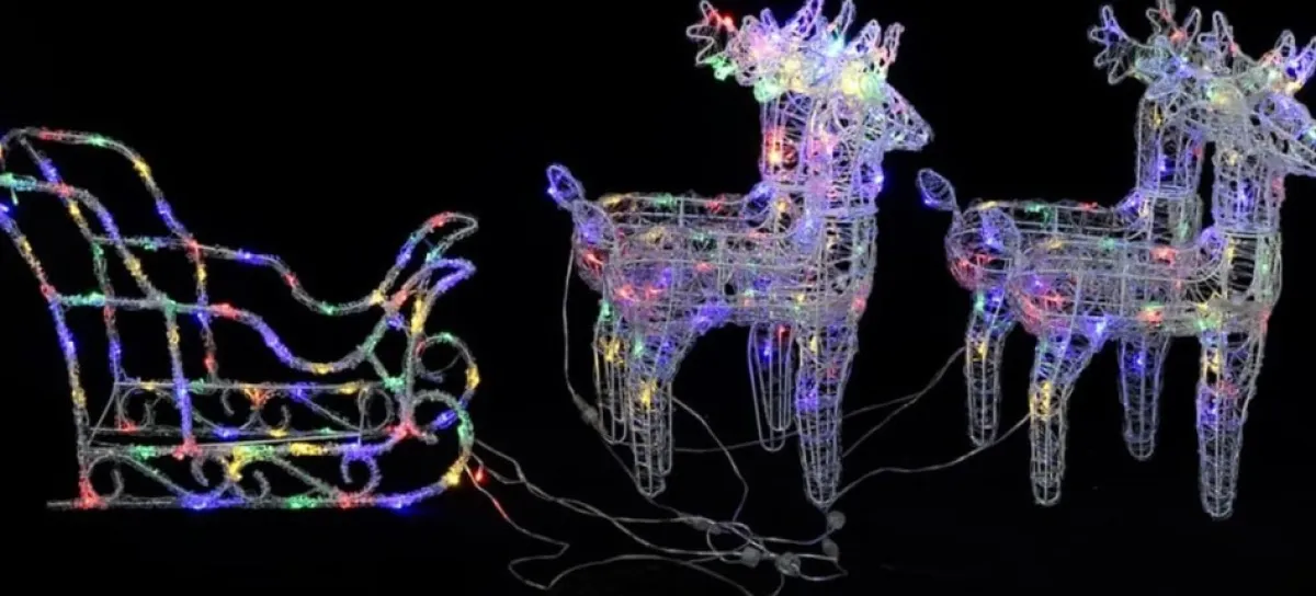 Verfraai Je Tuin Of Huis Met Deze Unieke Versiering. Deze 4 Rendieren En Slee Brengen In Combinatie Met Kleurrijke Lampjes De Ware Kerstsfeer Naar Voren!