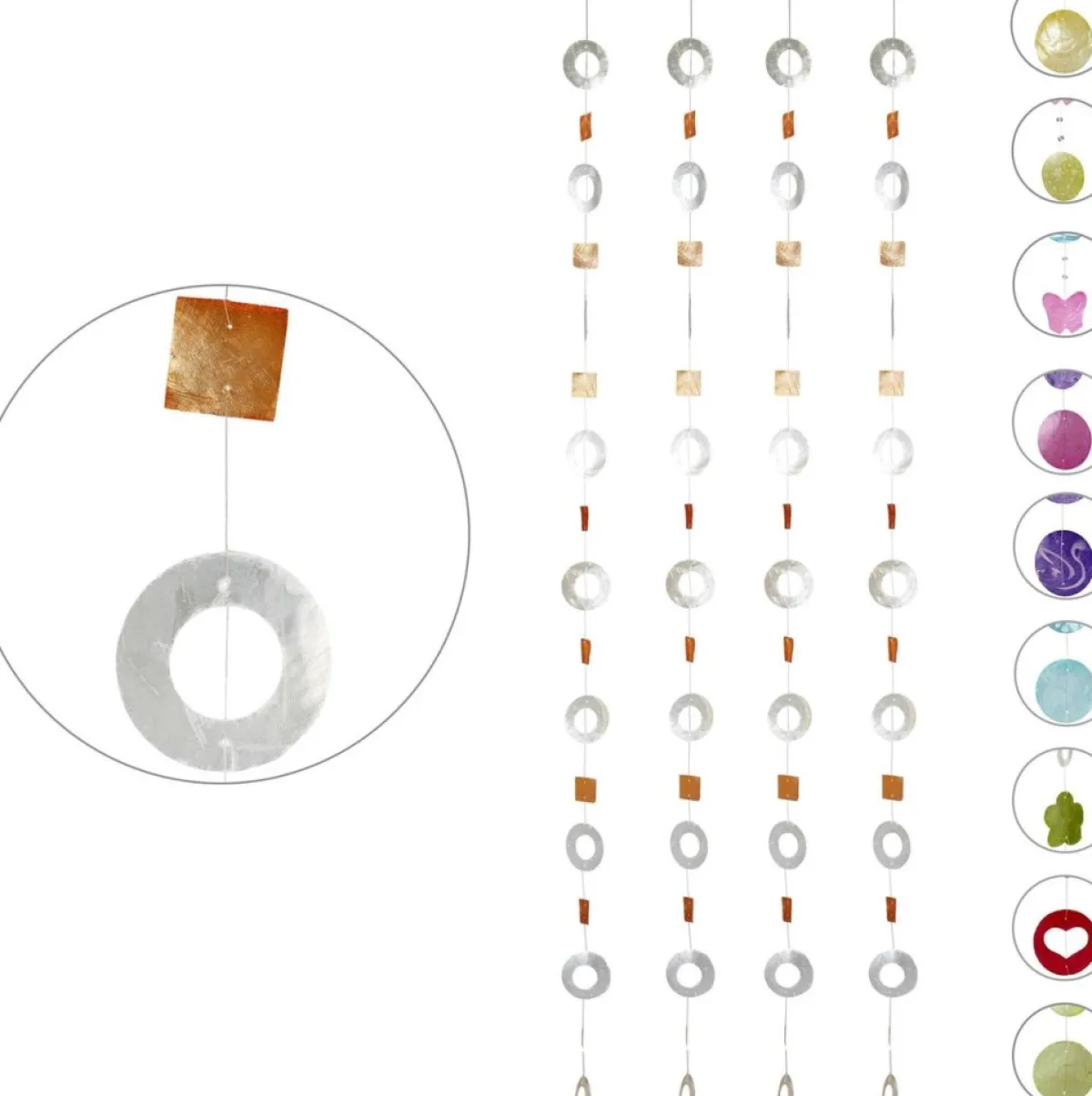 Lege Muren En Ruimtes Zijn Niet Echt Fijn. Wanneer Je Een Beetje Kleur In De Woning Wilt Hebben, Dan Zou Je Deze Schelpen Kettingen In De Woning Moeten Ophangen. Of Aan Het Raam, De Wand Of Als Schelpengordijn Voor De Balkondeur Of Gewoon Hangend Aan Het Plafond – De Capiz Guirlande Is Mooi Voor Jong En Oud. Opgehangen Aan De Metalen Haak Zijn Ze Ook Op Het Balkon Of In De Tuin Prachtig. Vlak Naast Elkaar Opgehangen Ontstaat Bij Een Briesje Wind Een Prachtig Geluid.