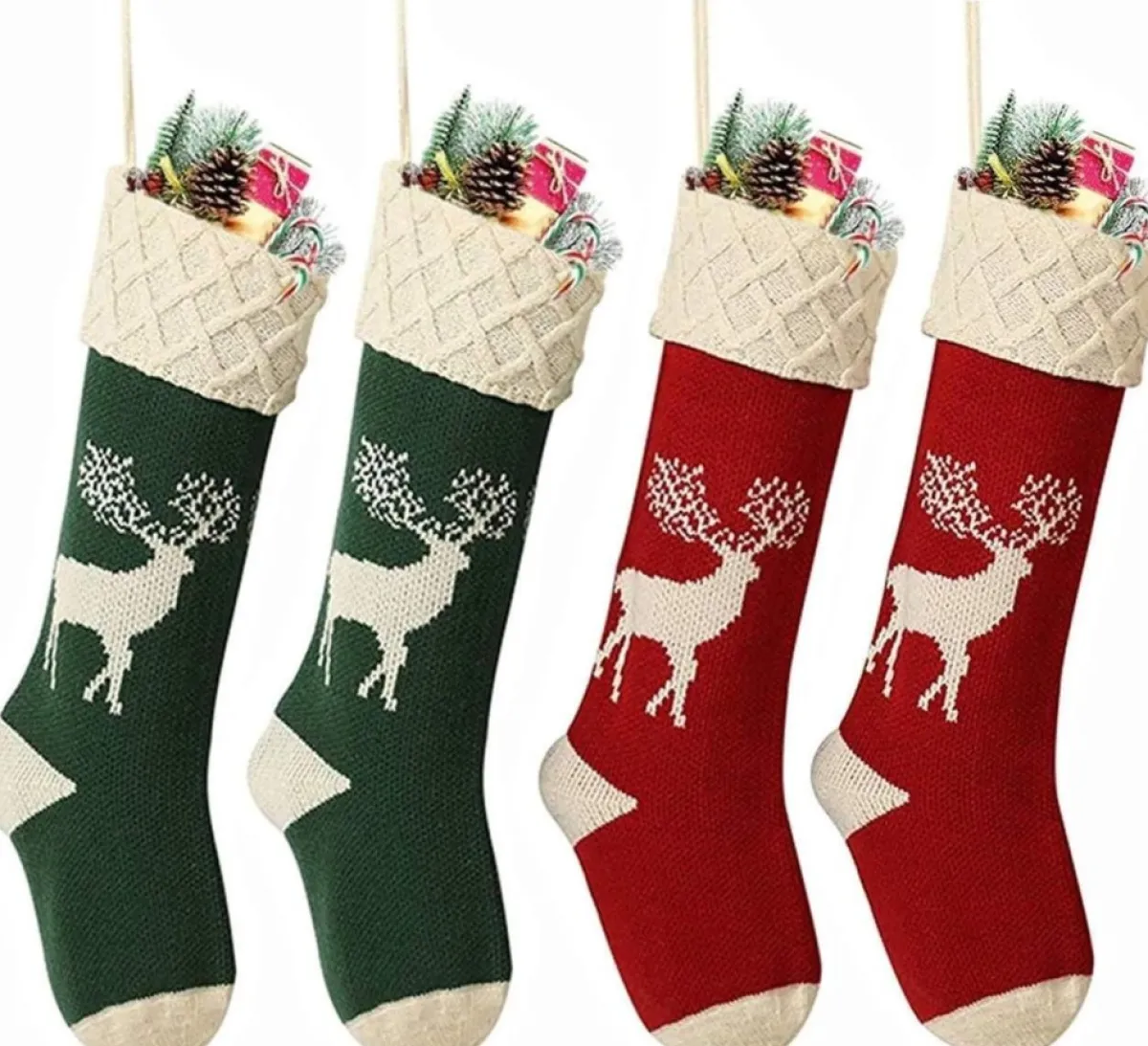 Voeg Een Vleugje Charme Toe Aan Je Vakantiedecor Met Onze Set Van 2 Rendier Gebreide Kerstkousen. In Feestelijk Rood En Groen, Zijn Ze De Perfecte Toevoeging Aan Je Open Haard Of Kerstboom.