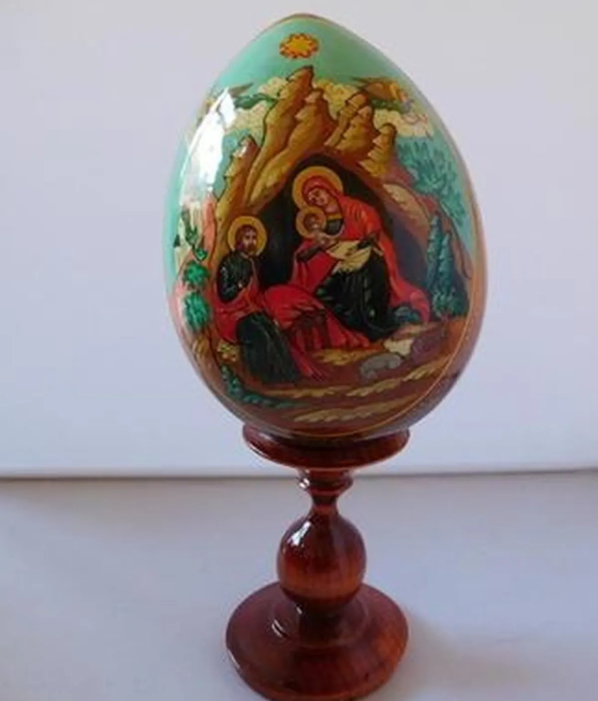 Russisch Kerststallen>Houten Ei Geboorte Van Jezus.