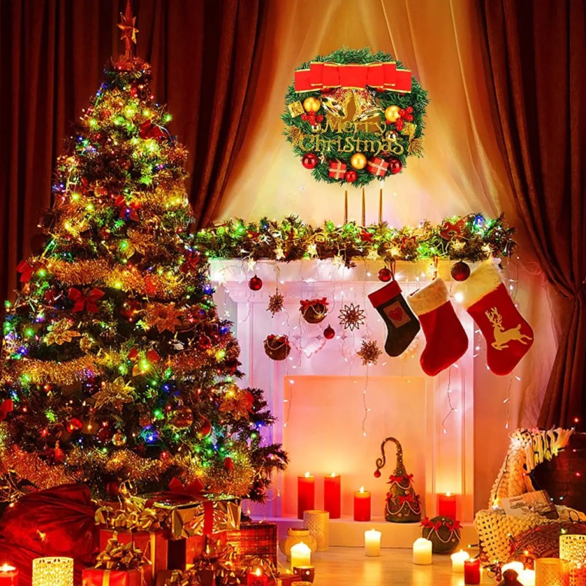 【Geschikt Voor Elke Kerstscene】 Selwo-Kerstversieringen Kunnen Worden Gebruikt Als Kerstkrans Of Als Kerstdeurkrans Om Uw Huis Op Meerdere Manieren Te Versieren. Perfect Om Boven De Open Haard Te Hangen, De Trap Op, Kerstboom, Deur, Raam, Open Haard, Tafel, Reling, Kan Ook Worden Gebruikt Om Kransen, Winkelramen Te Versieren. Ideaal Voor Het Decoreren Van Kerstfeestjes.