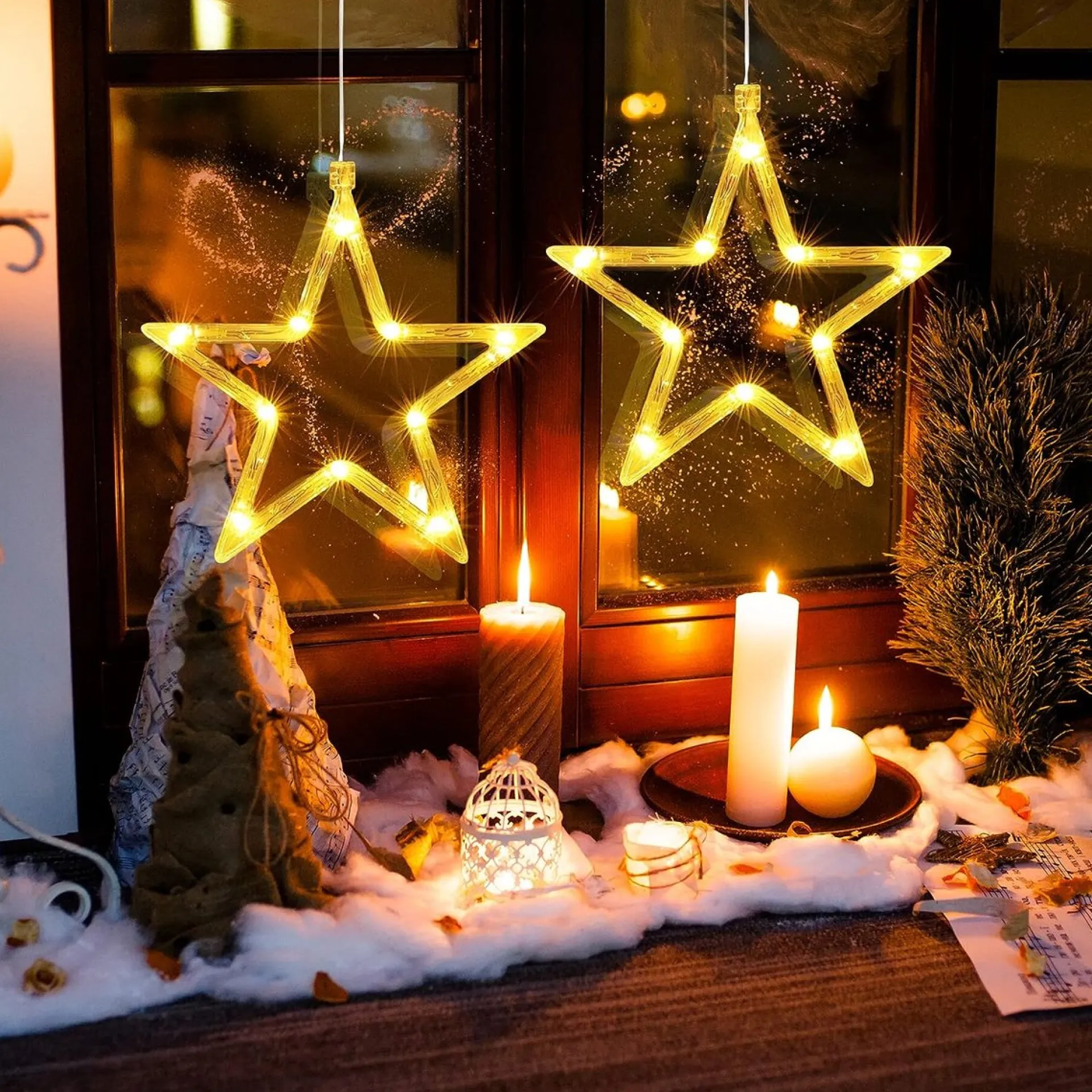 Led Ster Raamdecoratie: De Kerstraamdecoratieverlichting Met Sterrenvorm, 10 Leds, Warm Wit Licht, Dat Niet Gemakkelijk Beschadigd Kan Worden, Kan Worden Hergebruikt En Een Lange Levensduur Heeft.