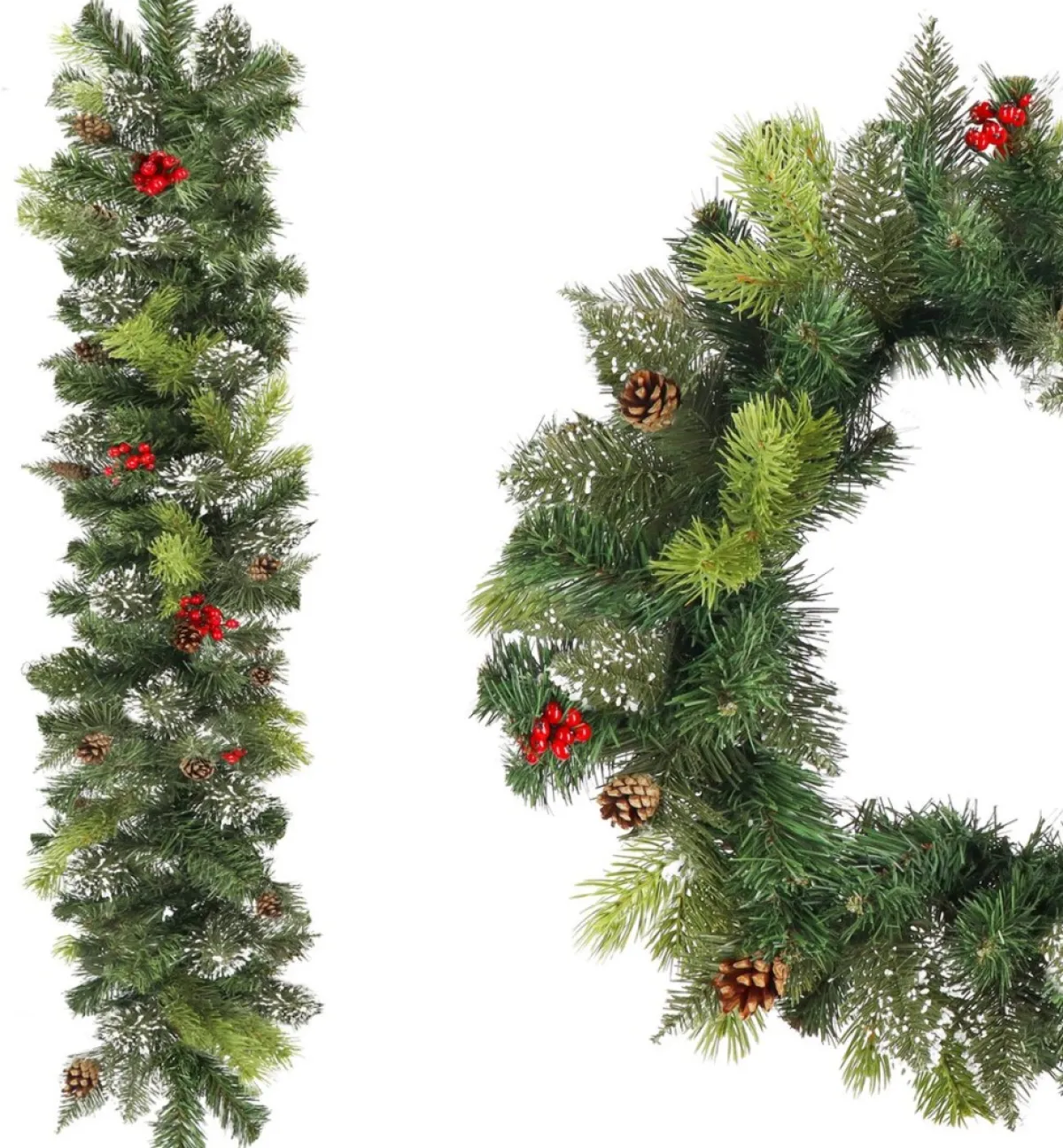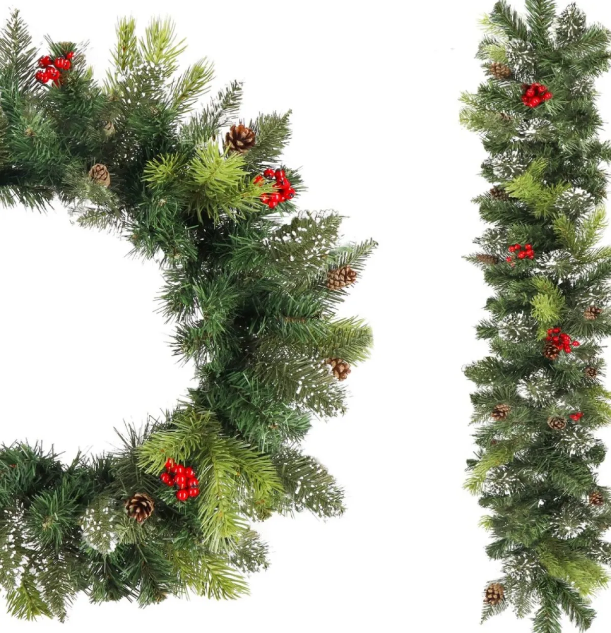De Guirlande Van Springos Is Gemaakt Van De Beste Materialen. De Combinatie Van Pe, Pvc En De Dichtheid Van De Verschillende Takken Zorgt Voor Een Realistische Look En Feel. De Verschillende Groentinten, Een Besneeuwde Tak Hier En Daar En Elementen Als Dennenappels En Rode Besjes Geven De Guirlande Een Natuurlijke Uitstraling. Het Voordeel Hiervan Is Dat Je De Guirlande Zelf Eventueel Nog Kunt Pimpen Met De Extra Elementen Als Lampjes En Kerstballen.