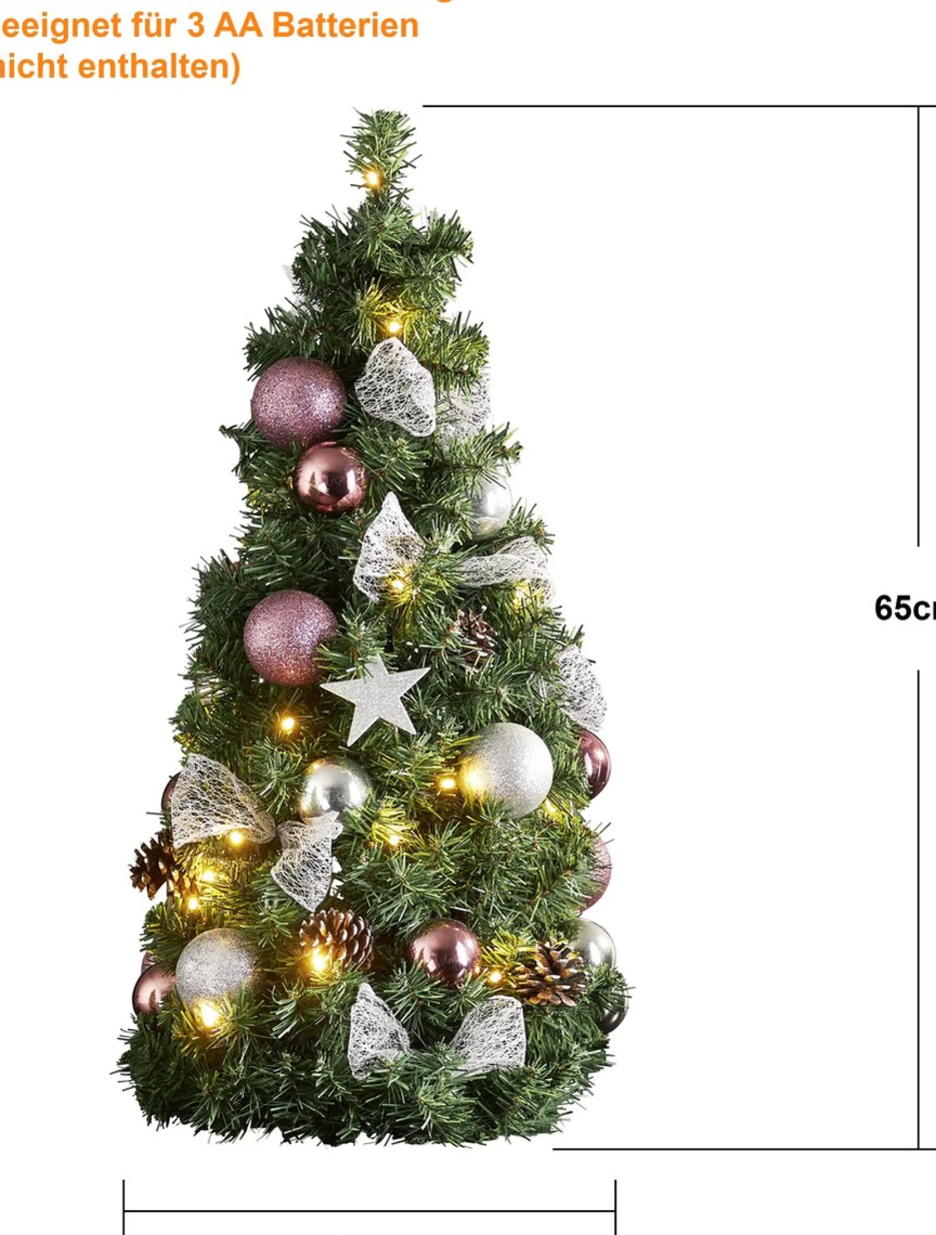 Star Trading Noel Kunstkerstboom Van, Kleine Kerstboom Met Kerstboomversiering Led-Lichtsnoeren En Timer In Groen, Zilver En Roze Voor Binnen, Warm Wit, Werkt Op Batterijen, Hoogte: 45 Cm Shop