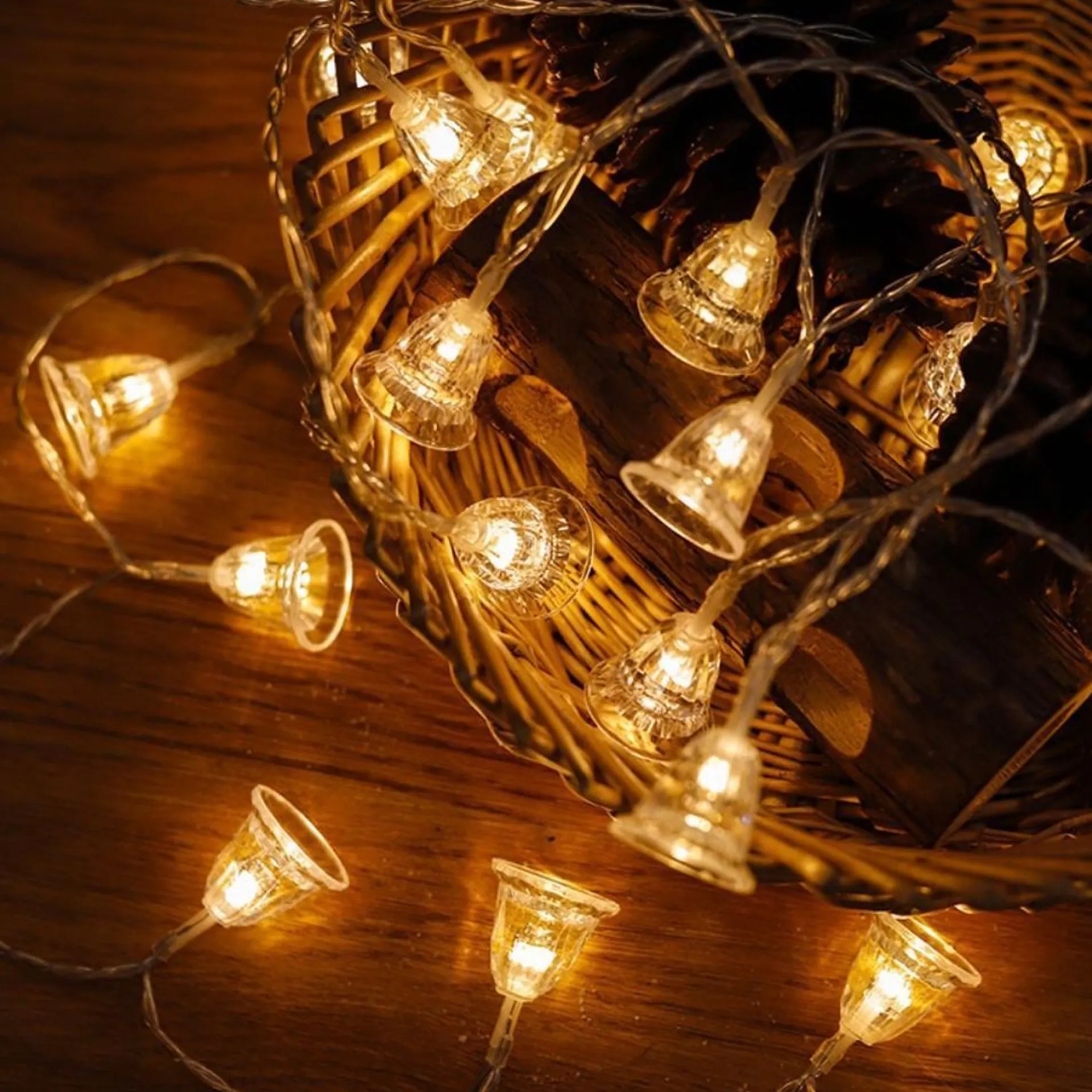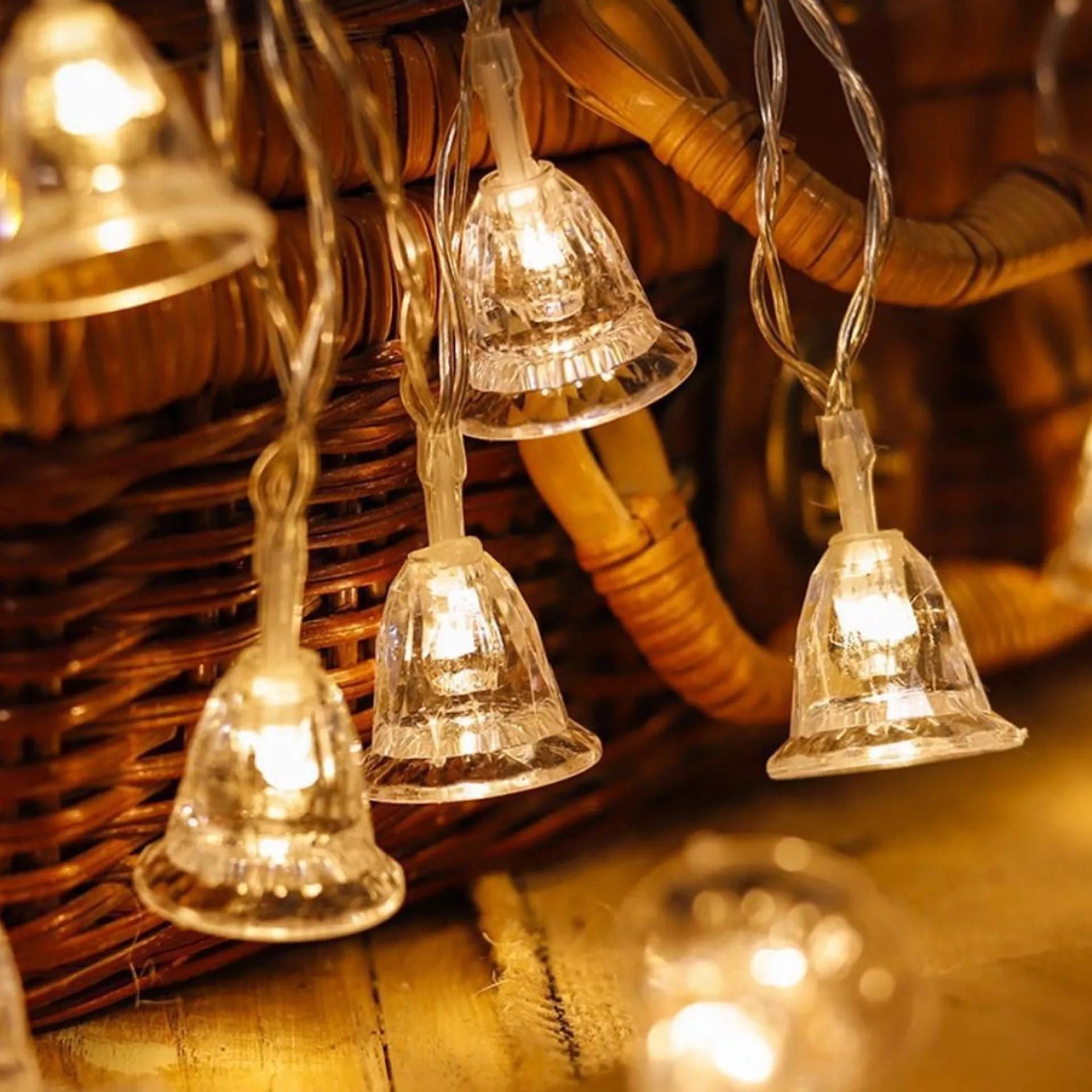 Licht Snoer Lichtslinger – Led Lampjes – Klokken Kerstmis Belletjes – Sfeerverlichting – Feestverlichting – Warm Wit – 10 Led Lampjes Op Battterij – 2 Meter