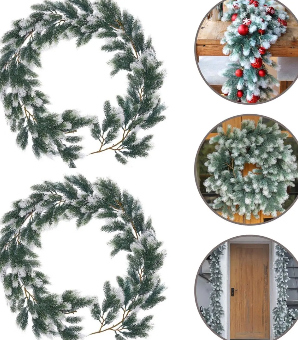 Trend24 Guirlandes>Guirlande – Kerst Guirlande – Kerstguirlande – Kerstslinger – Deurkrans – Dennenslinger – Kerstslinger – Dennentak – 180 Cm (360 Cm Samen) – Groen – Wit – 2 Stuks