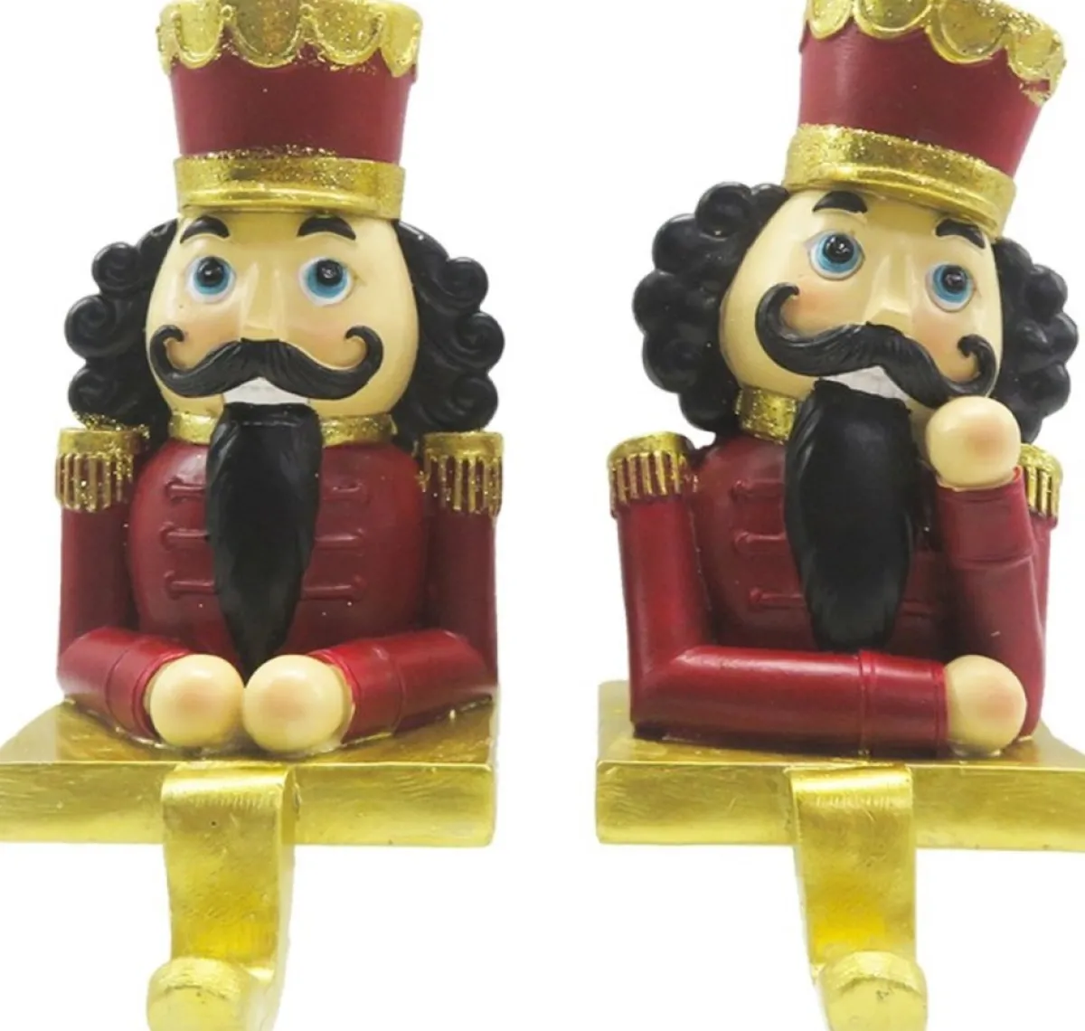 Decoratieve Kerst Sokhangers In De Vorm Van Notenkrakers In De Kleur Rood Met Goudkleurig Van Ons Huismerk.