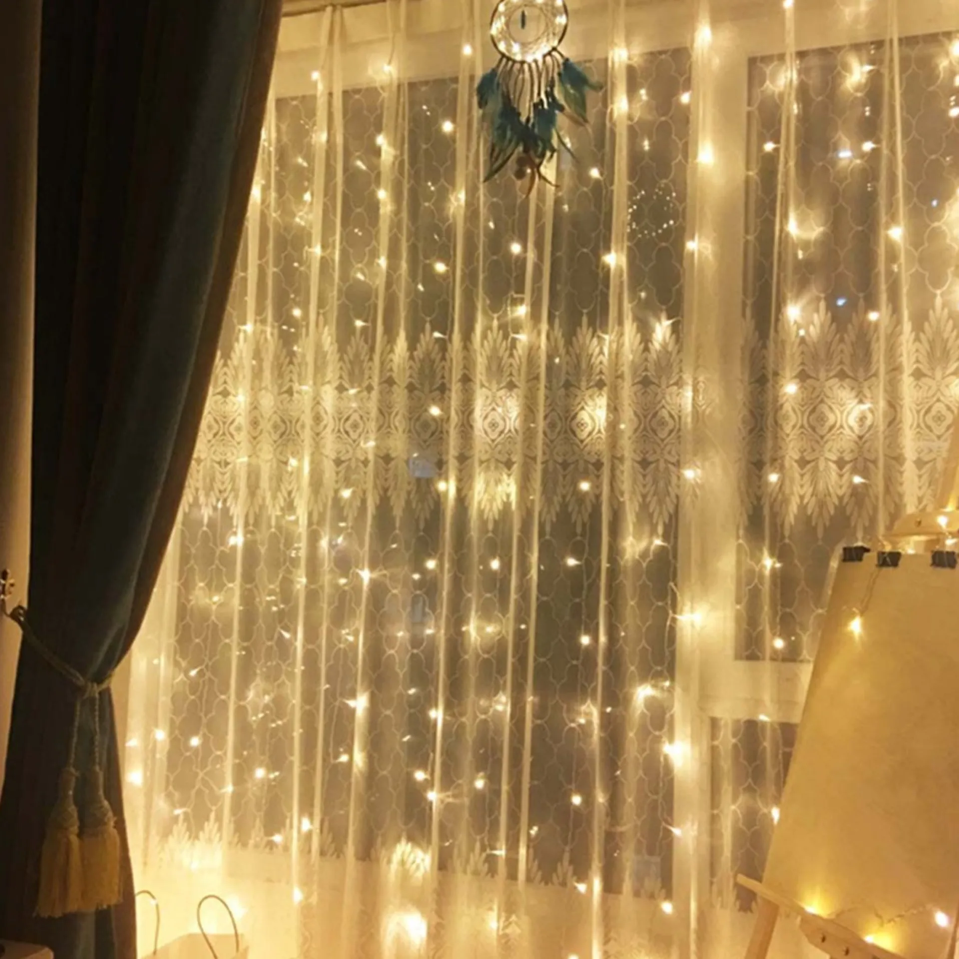De Maat Van Deze Kerstverlichting Is 3X3 Meter. Dit Lichtgordijn Heeft In Totaal 300 Sfeer Makende Leds. Elk Van De 10 Strengen Aan Dit Lichtgordijn Heeft 30 Leds. De Warme Kleur Die De Led’s Van De Kerstverlichting Produceren, Is 2700K Warm Wit Licht. De Kopere Kabels Zijn Gemakkelijk Naar Wens Te Vormen. Ook Is Dit Lichtgordijn Ip44/Ip65 Waterdicht Om Lichte Regen Of Waterstoringen Te Weerstaan