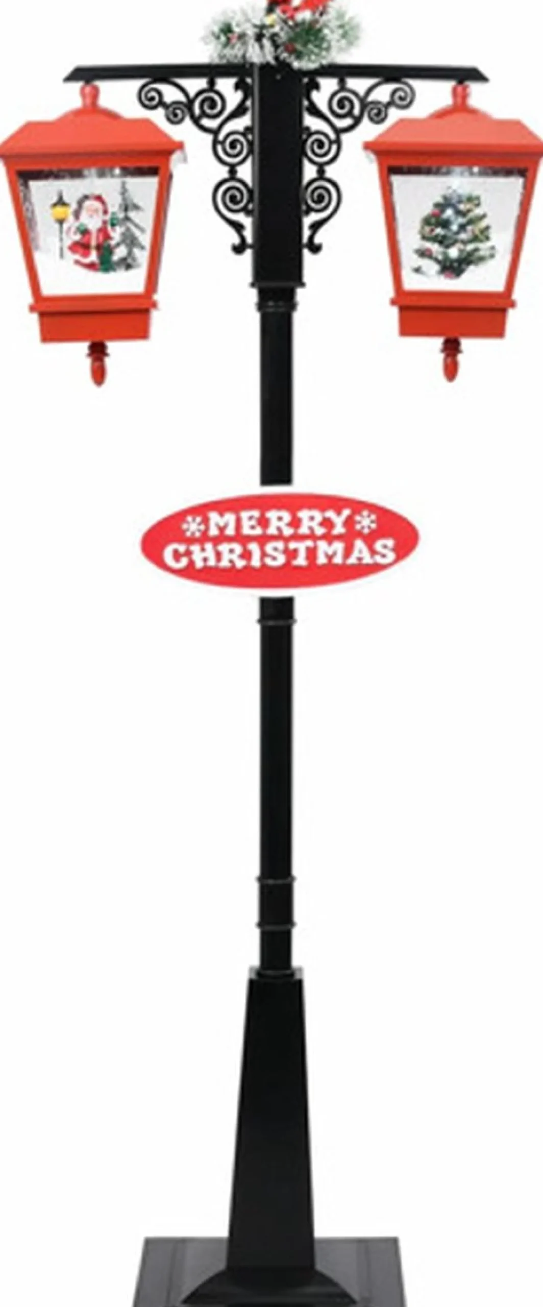 Deze Dubbele Lamp Geeft De Feestdagen Een Extra Kerstvleugje. De Geintegreerde Pomp Pompt De Sneeuw Op Van De Basis En Spuit Deze Uit De Bovenkant. Hij Is Geschikt Voor Het Versieren Van Winkels Omdat De Lantaarn Een Feestelijke Krans, Een Strik, Een Kerstman, Sneeuw En Een Merry Christmas Bord Heeft. Deze Kerstversiering Is Lichtgewicht En Duurzaam Waardoor Hij Elk Jaar Opnieuw Te Gebruiken Is En Dus Een Zeer Voordelige Keuze Is.