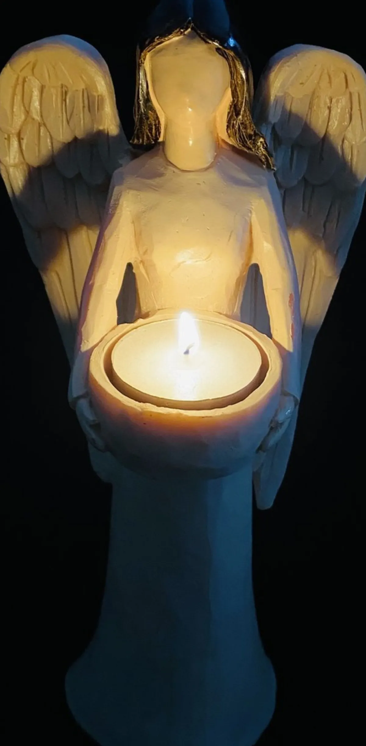 Creme Engel Waxinelichthouder Voor Theelichtje 21X11X9Cm